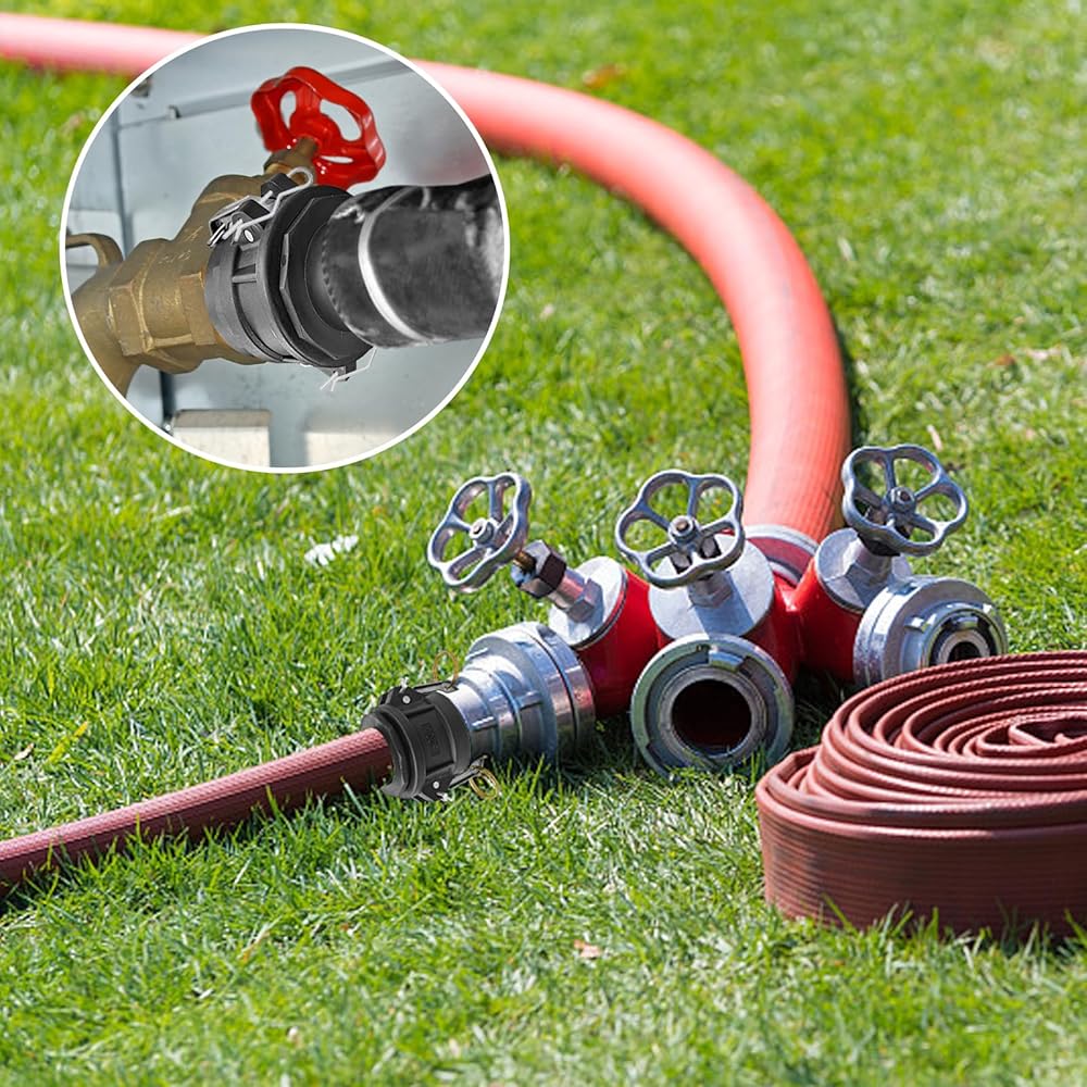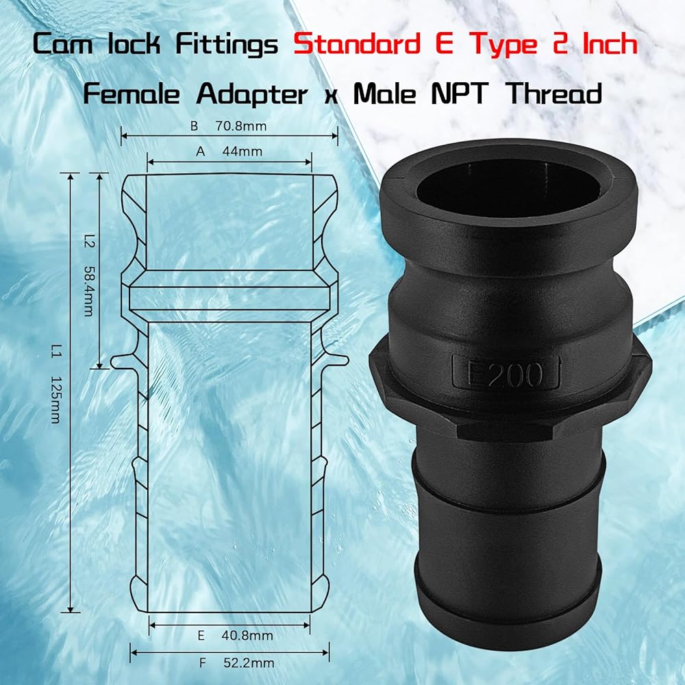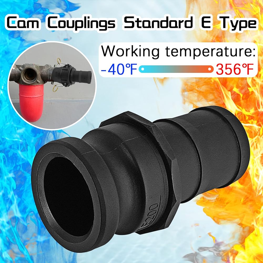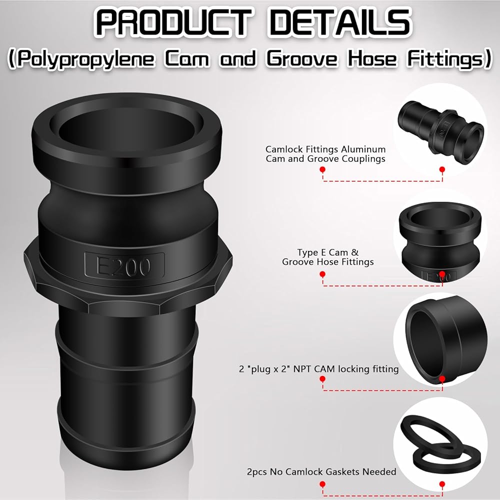 قطعتان من تركيبات قفل الكاميرا من مادة البولي بروبيلين، تركيبات قفل كامة من البلاستيك بولي بروبلين من النوع E مقاس 2 بوصة وتركيب خرطوم الأخدود، محول ذكر 2 بوصة × وصلة اقتران قفل كامة للخرطوم (2 بوصة)