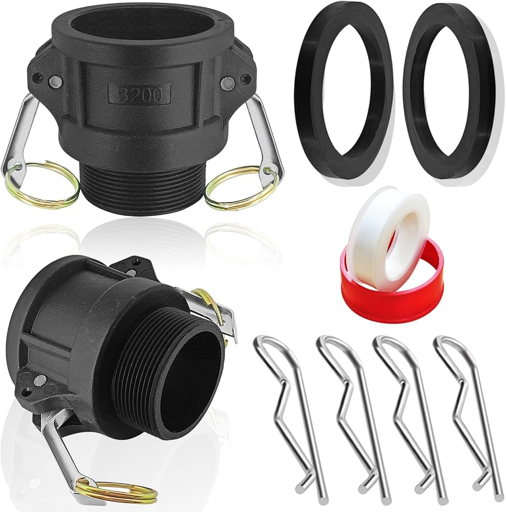 قطعتان من تركيبات قفل الكاميرا من مادة البولي بروبيلين، تركيبات قفل كامة من البلاستيك بولي بروبلين من النوع B وخرطوم الأخدود، 2 بوصة أنثى × 2 بوصة موصل اقتران قفل كامة ذكر (2 بوصة)