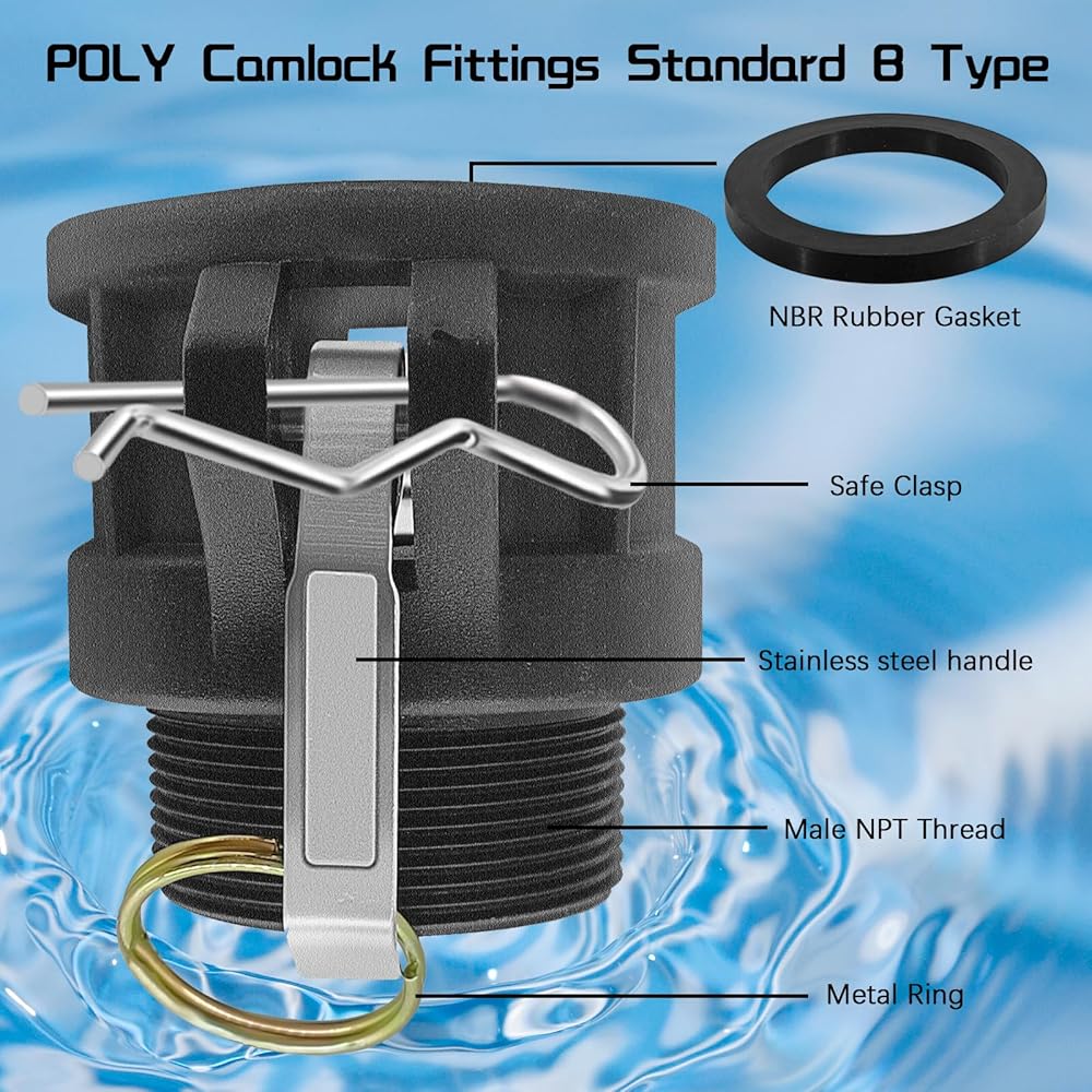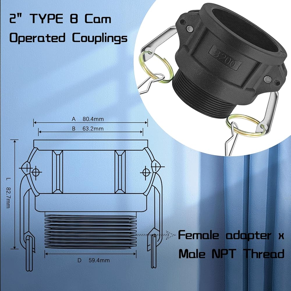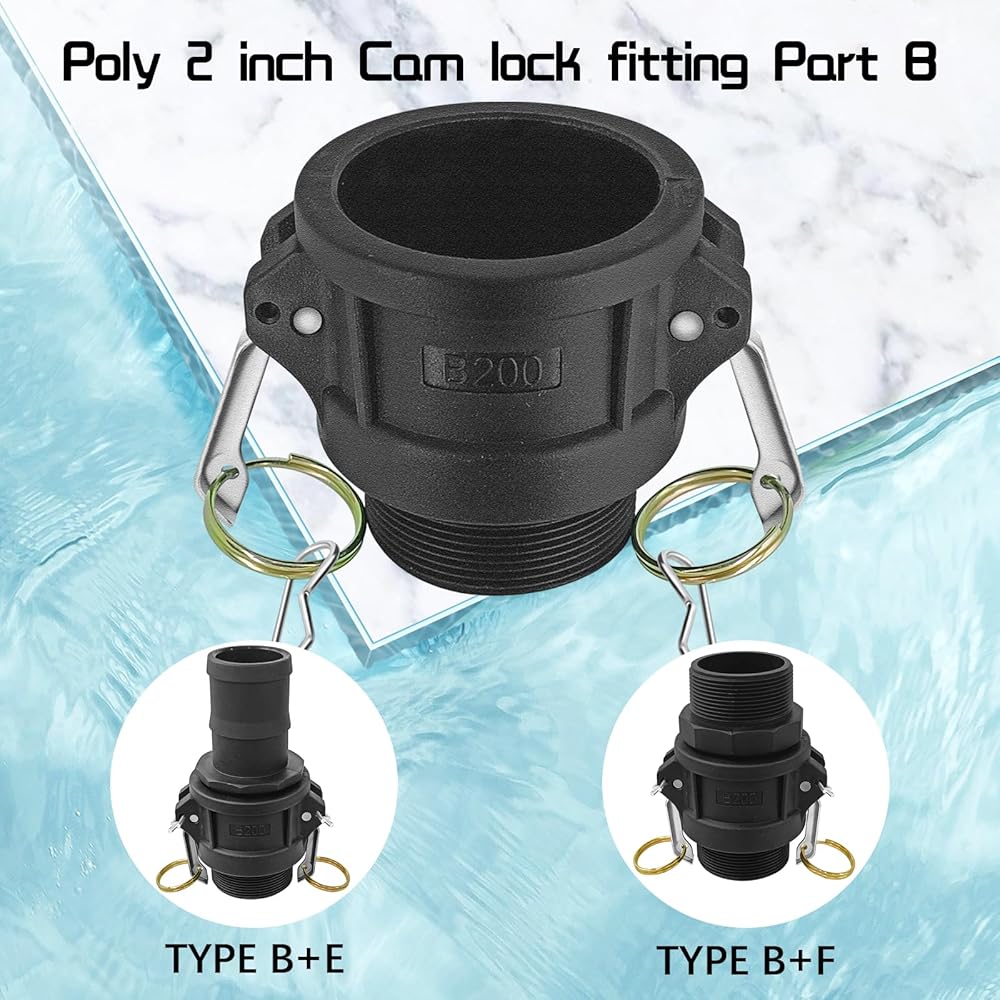 • سهولة الاتصال: يمكن لمحول قفل الكاميرا من النوع B التعامل مع الضغوط التي تصل إلى 150 رطل لكل بوصة مربعة، والجانب الأنثوي من هذا المحول سيتصل فقط بقفل كاميرا ذكر 2 بوصة. الجانب الملولب الذكر من هذا المحول سيتصل فقط بأنثى 2 بوصة الأنابيب الوطنية المدببة (NPT) أو خيط خرطوم الأنابيب الوطني المستقيم (NPSH). على سبيل المثال، تركيب الأنابيب البلاستيكية أو المعدنية.