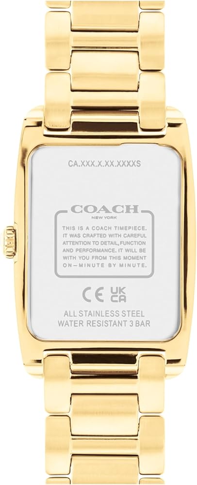 Caring for Your Timepiece: Your Coach watch has been developed with meticulous attention to quality, function and detail. A maintenance interval of 3 to 5 years is recommended, in addition to any required battery replacement. Never open the watch yourself.