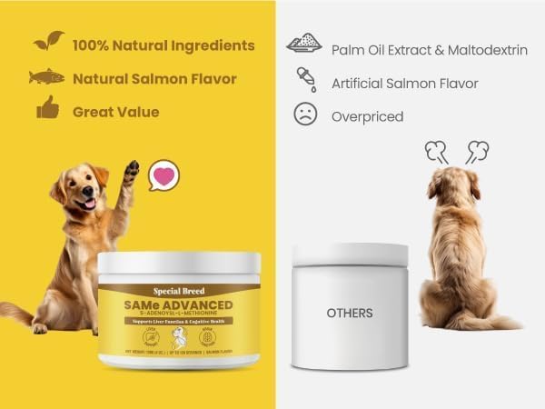SAMe للكلاب: تركيبة متقدمة تدعم وظائف الكبد والدماغ، مما يسمح لكلبك أن يعيش حياة صحية
