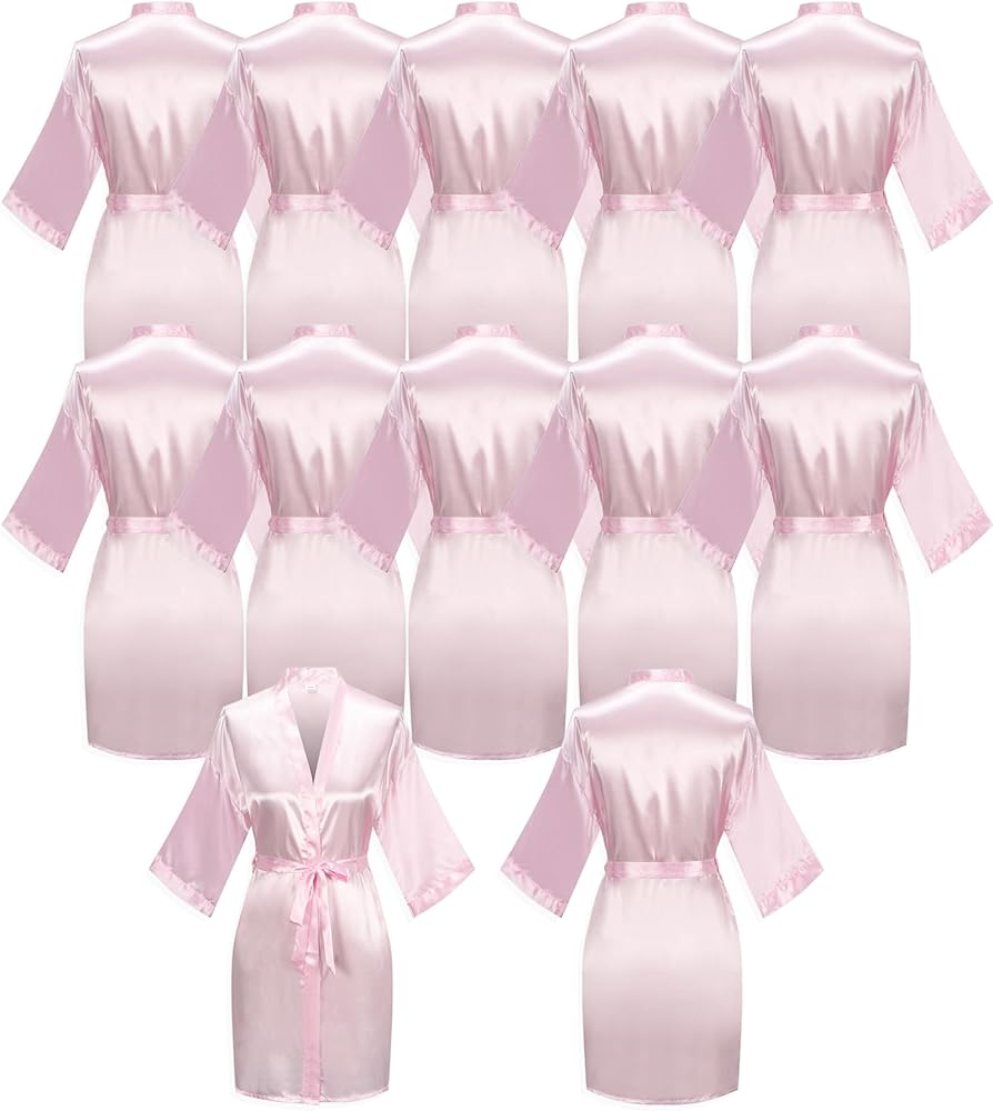 مجموعة من 12 قطعة من أرواب الساتان، مناسبة جدًا كأرواب زفاف لوصيفات العروس لحفلات الزفاف، يمكنك تصميم النص المطلوب على الظهر. وبالطبع فهو مثالي أيضًا للاستخدام اليومي كبرنس حمام.