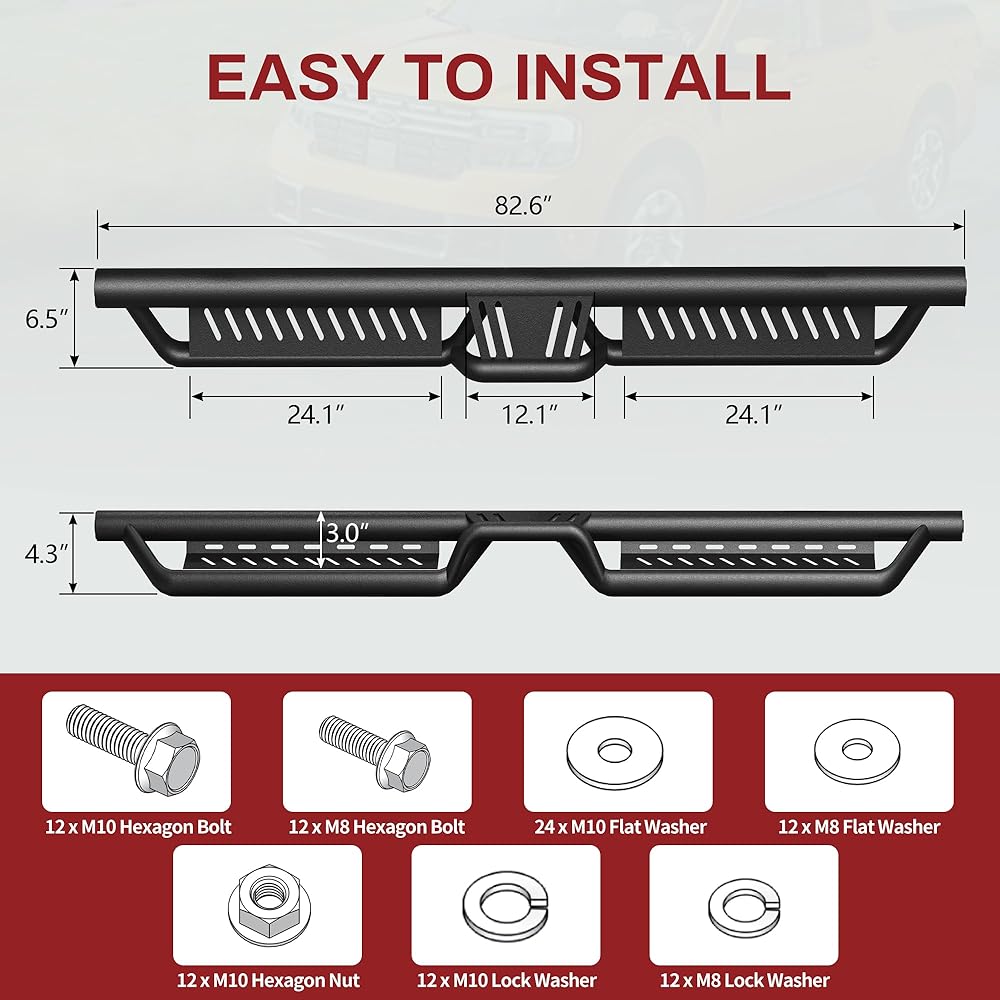 Easy Installation: Direct bolt-on installation with no drilling needed; All mounting hardware and installation instructions are included