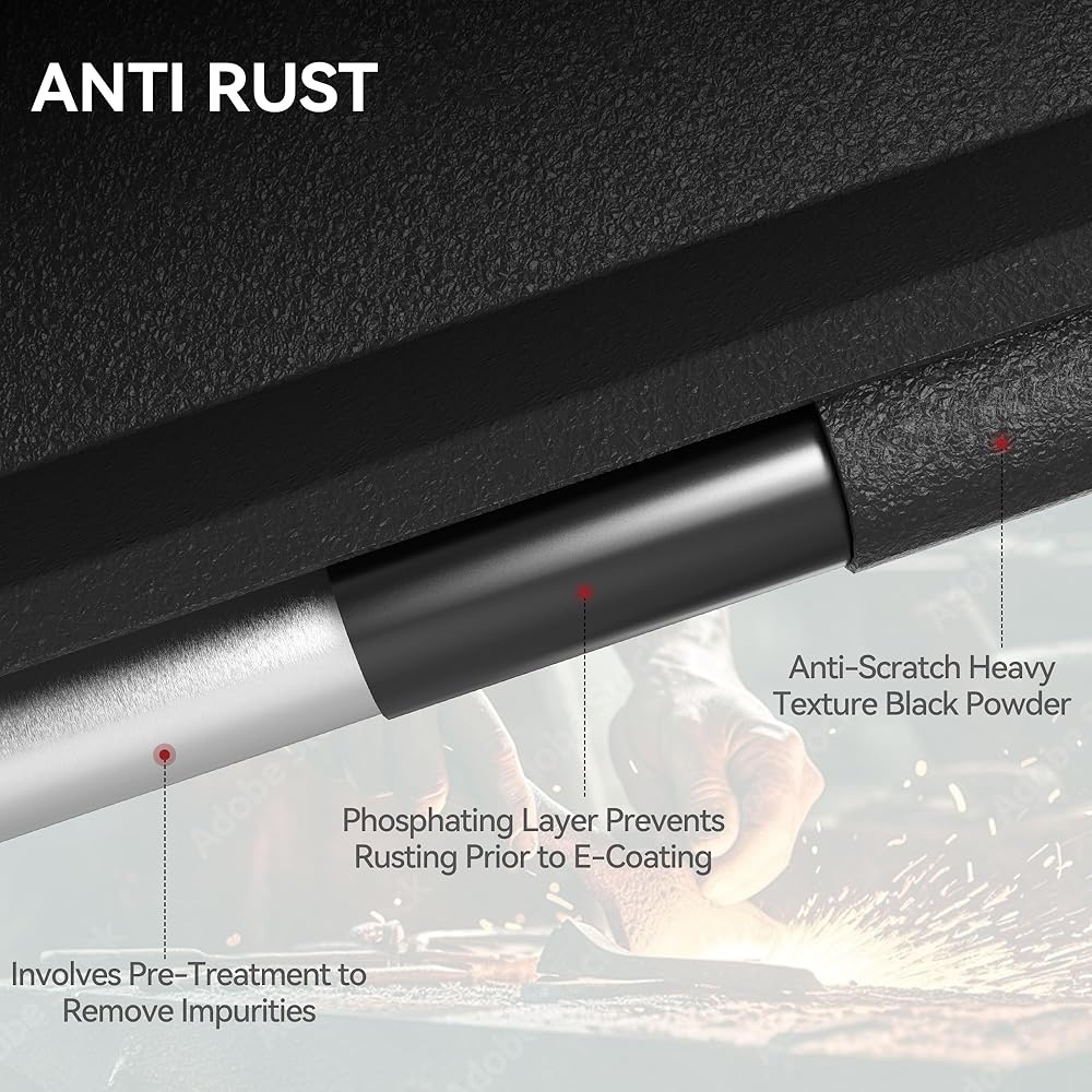 500 lbs. capacity: Fine textured powder coating offers exceptional rust and corrosion resistance so you can drive in any weather and on any road; Heavy duty all-steel nerf bars can handle more than 500 lbs. load capacity on each side