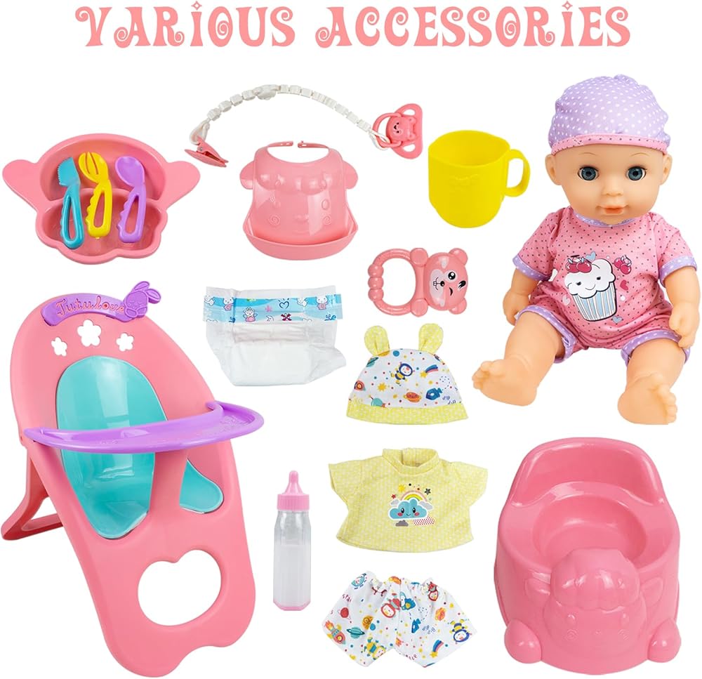【آمنة وغير سامة】يتم تسليم مجموعة لعب الدمى الواقعية والتفاعلية كهدية مثالية لعيد الميلاد أو العطلات أو أعياد الميلاد أو أي وقت آخر! مجموعة اللعب التظاهرية الخاصة بنا للأطفال الصغار والفتيات والأولاد ومرحلة ما قبل المدرسة هي متعة رائعة مع الكراسي العالية لدمية الأطفال. تعيين.