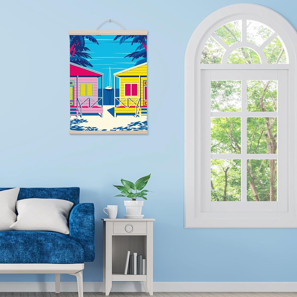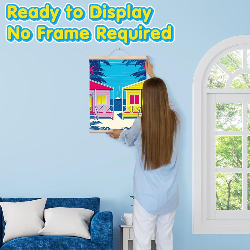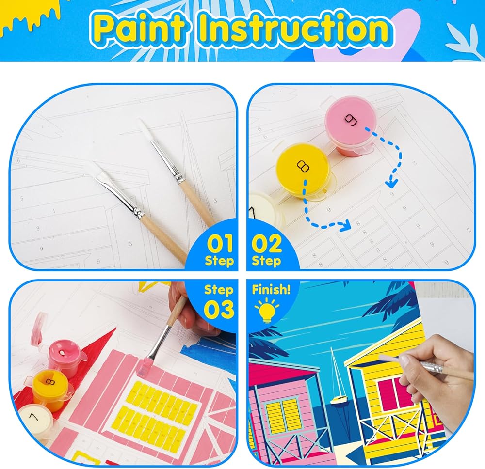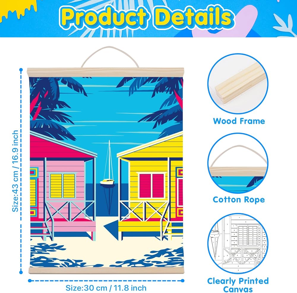 طلاء TAVTAVOLOZZA بالأرقام للبالغين والمبتدئين والأطفال، مجموعة طلاء منازل الشاطئ مقاس 12 × 16 بوصة، مجموعة طلاء أكريليك DIY مع إطار خشبي، وحبل قطني قابل للتعليق وفرش