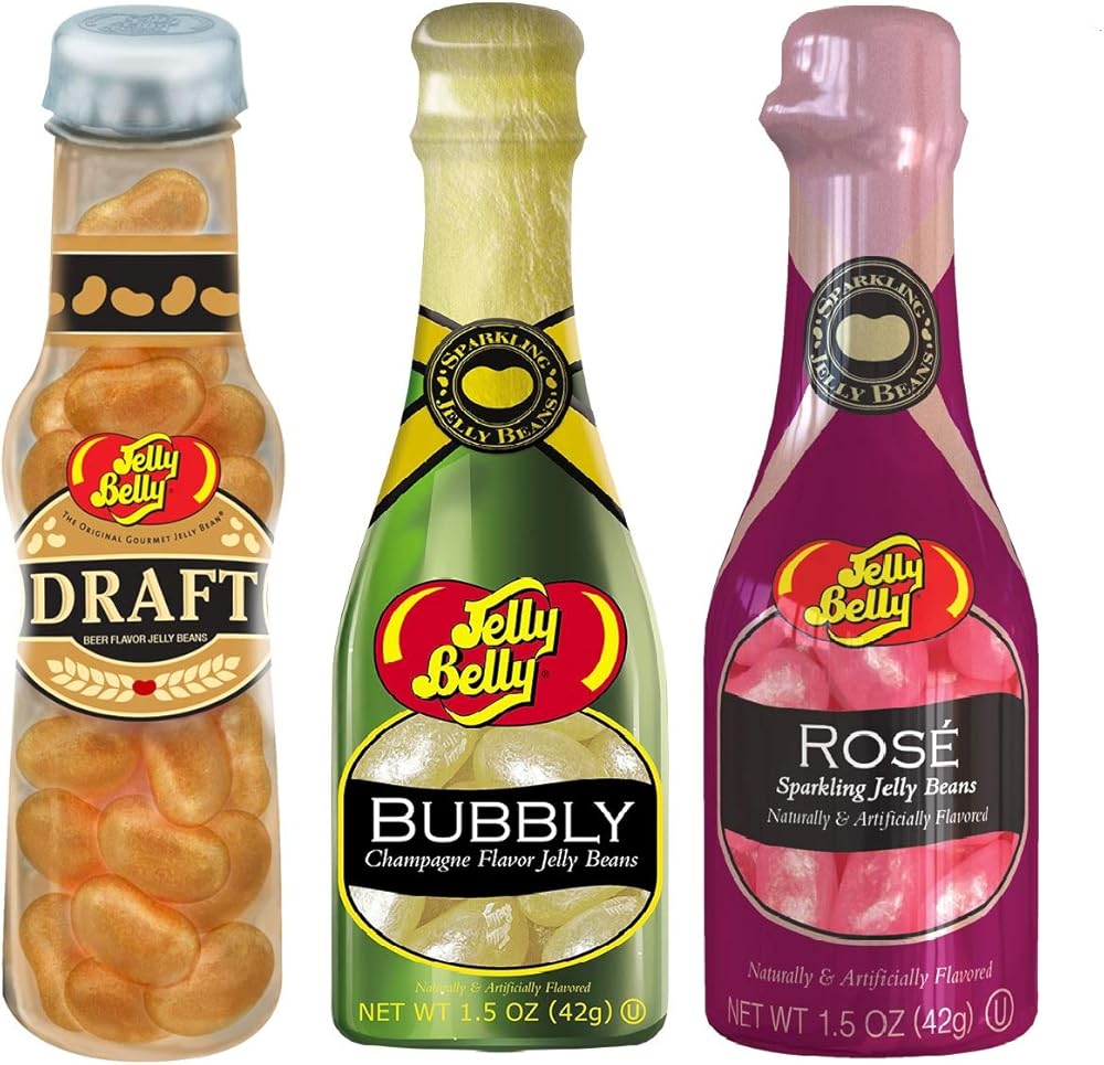 عبوة من 3 زجاجات صغيرة من جيلي بين تشيرز - البيرة والشامبيج ونبيذ الورد، 1.5 أونصة لكل منها (هدايا رائعة للحفلات أو هدايا الاستحمام)