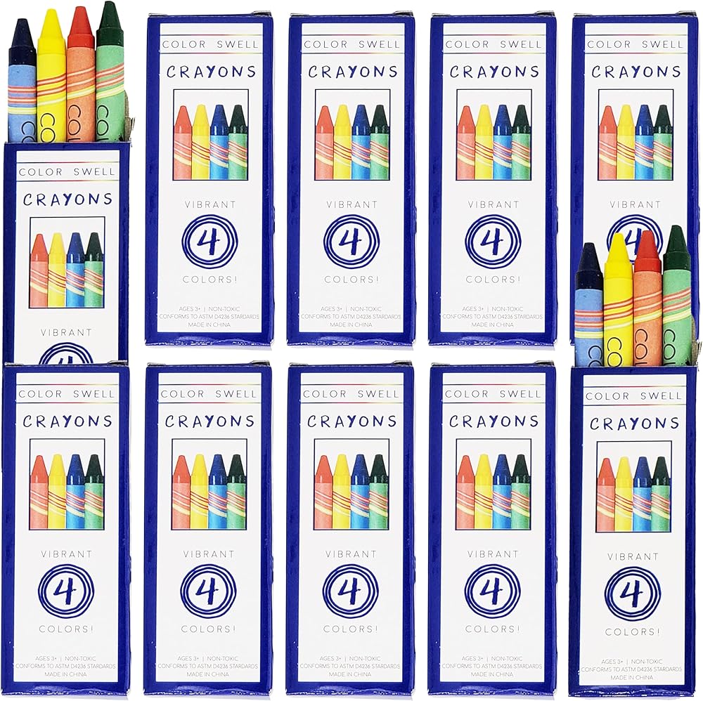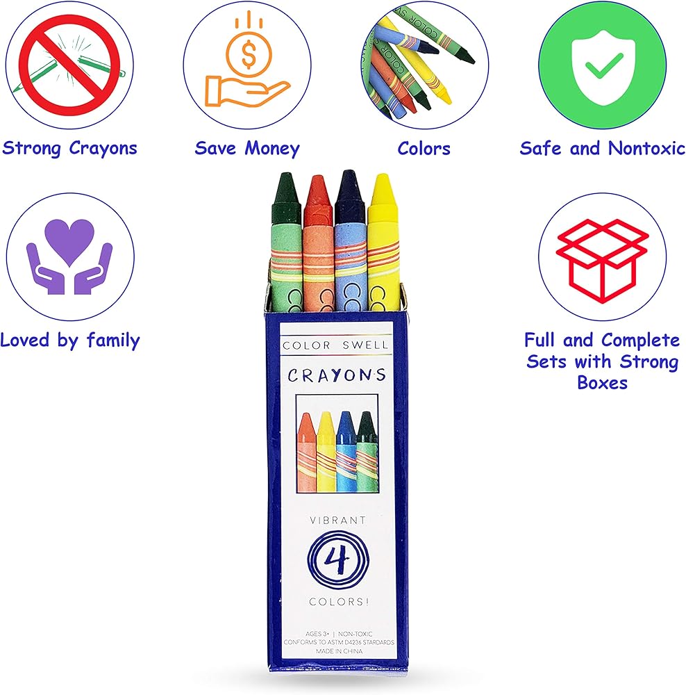 • CRAYONS ARE SAFE, DURABLE & STORAGE FRIENDLY Color Swell Bulk Crayons are nontoxic, conform to ASTM-D4236 and EN71 standards, and come with a sturdy individual box for easy storage.