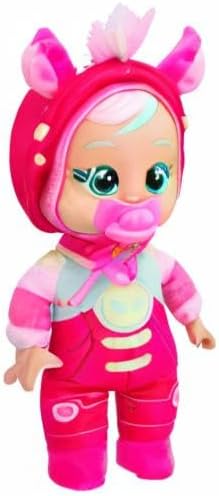 Introducing the adorable Cry Babies Tiny Cuddles Talents — the soft baby dolls with a special twist! These lovable companions bring joy to little ones while showcasing their unique talents with their outfits. With 6 different dolls to collect, each wearing a personalized outfit that reflects their special skill. Choose your favorite and embark on a world of imaginative play! Meet Daisy the cat and a pop star! Dressed in a star studded outfit with a blue and white top featuring stars and a cute pink skirt! Her hoodie has a cute cat ears and a microphone so she can singing her favorite songs. There are 6 dolls to collect: Coney the chef, Daisy the singer, Dreamy the roller skater, Hannah the astronaut, Phoebe the gymnast and Roxy the cheerleader! What makes them truly special? Press their head, and watch as real tears stream down. Just like caring for a real baby, these dolls come with a matching pacifier for comforting moments. Standing at a perfect 9.8 inches, these dolls are the ideal size for on-the-go adventures. Whether it's a trip to the park or a visit to Grandma's, take your Tiny Cuddles Talents with you wherever you go. Designed for kids aged 18 months and up, these dolls offer a blend of softness, entertainment, and nurturing play. Bring home the magic of Cry Babies Tiny Cuddles Talents and let the fun-filled adventures begin!