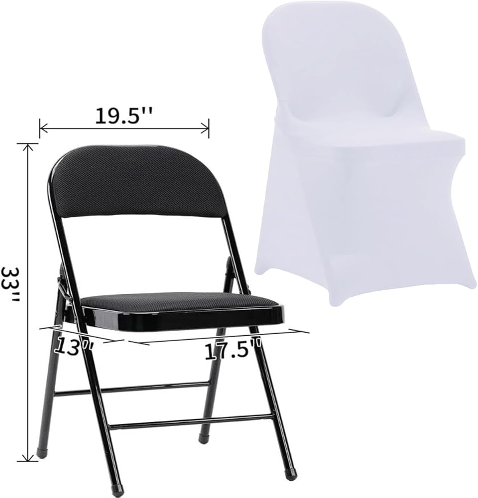 عبوة من 100 غطاء كرسي أبيض للكراسي القابلة للطي. المناسبة: الزفاف، والحفلات، وأعياد الميلاد، والفنادق، والذكرى السنوية، والولائم، وغرفة الطعام، وديكور المناسبات الخارجية وما إلى ذلك.