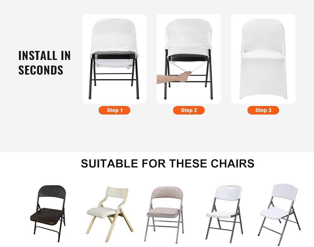 سهل العناية وإعادة الاستخدام: الغسيل في الغسالة والغسيل اليدوي كلاهما مناسب لأغطية الكراسي القابلة للطي في المنزل. من السهل العناية بأغطية مقاعد الكراسي المصنوعة من الألياف اللدنة ويمكن إعادة استخدامها عدة مرات.