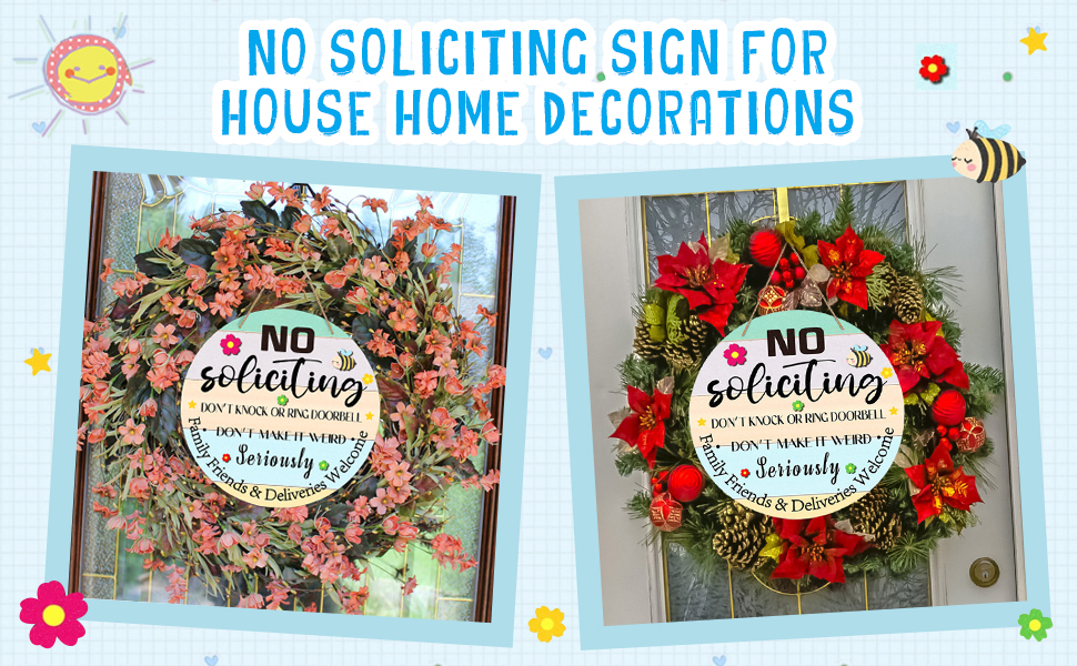 لافتة مضحكة بدون طلب للمنزل: تتميز بتصميم زهرة النحل مع الكلمات "لا يوجد طلب لا تدق أو تدق جرس الباب على محمل الجد، لا تجعل الأمر غريبًا مع أصدقاء العائلة والتسليم"، ضعه على جرس الباب الأمامي الخاص بك، لتذكير الناس لا تطرق الباب أو لا تدق جرس الباب، أبعد الزوار غير المرغوب فيهم عن منزلك