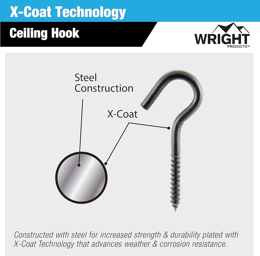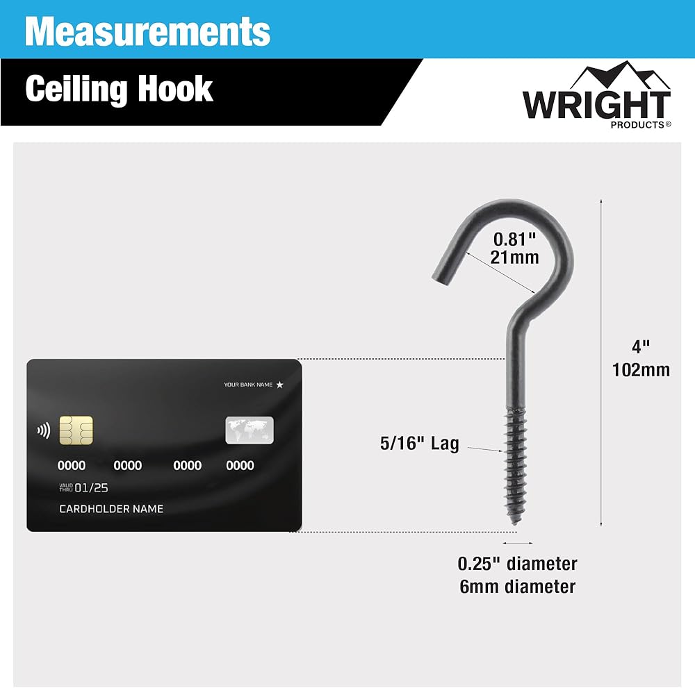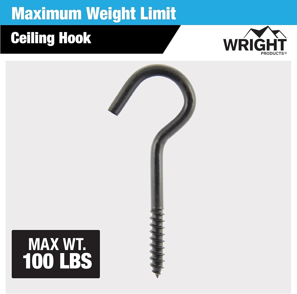 خطاف سقف من رايت برودكتس، 10 عبوات، 4 بوصة × 0.31 بوصة، شديد التحمل، مقاوم للطقس للاستخدام الداخلي أو الخارجي، لتعليق النباتات والأضواء والديكورات - أسود غير لامع