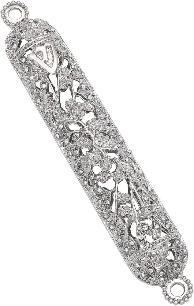 Stationery: Contemporary intricate silver finished pewter branch pattern adorned with hand-set clear European crystals. Tarnish resistant. Signature luxury gift box included. An original design from the Olivia Riegel(r) collection. SendAFrame proudly carries the entire photo frame Olivia Riegel(r) collection and related style home decor pieces like this Mezuzah. 850006219766 - JU2102