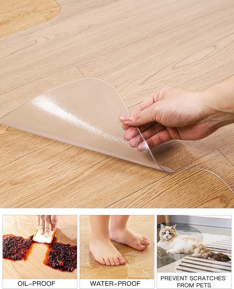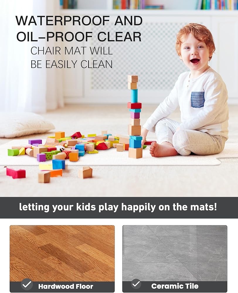 متينة وسهلة التنظيف: سجادة أرضية كرسي المكتب YSAGi مصنوعة من مواد عالية الصلابة، غير سامة، بدون رائحة، ليس من السهل كسرها. سجادة الكرسي الشفافة المقاومة للماء والزيوت مصنوعة من مادة PVC عالية الجودة وسهلة التنظيف للغاية. ما عليك سوى مسح وسادة المكتب المصنوعة من الفينيل بقطعة قماش مبللة يمكنها التخلص من كل الفوضى على سطحها. دع أطفالك يلعبون بسعادة على السجادة!