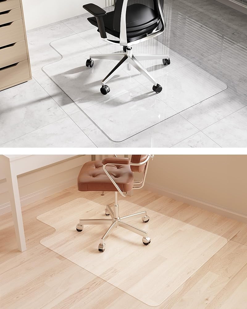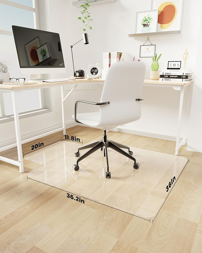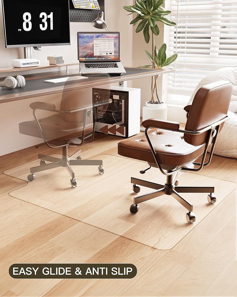 سهل الانزلاق ومضاد للانزلاق: السطح اللامع يسمح لكرسي مكتبك بالتحرك بسهولة، كما أن سجادة الكرسي الخاصة بنا ذات قبضة كافية للحفاظ على التدحرج المتحكم حتى لا ينزلق الكرسي. السماح لعجلات كرسيك بالانزلاق بسلاسة على السجادات القوية والمتينة دون ترك خدوش أو شقوق. كما أن الجزء الخلفي من وسادة الكرسي لدينا يتميز بتصميم مانع للانزلاق، مما يضمن الاستخدام الآمن، وتجنب الحركة غير المرغوب فيها أو الانزلاق عند تحريك الكرسي.