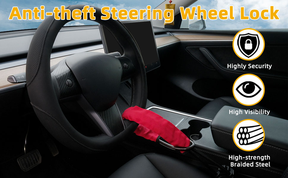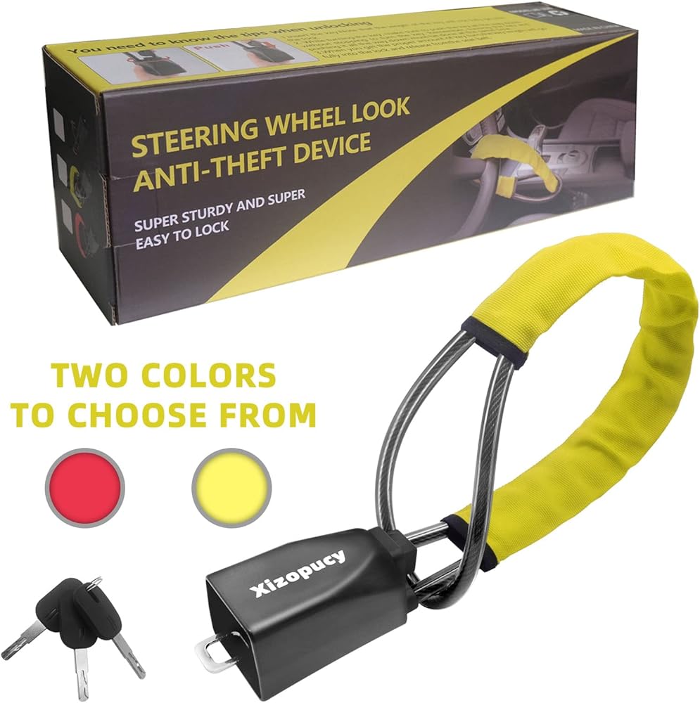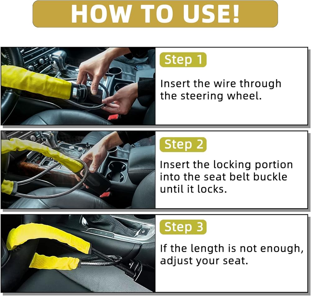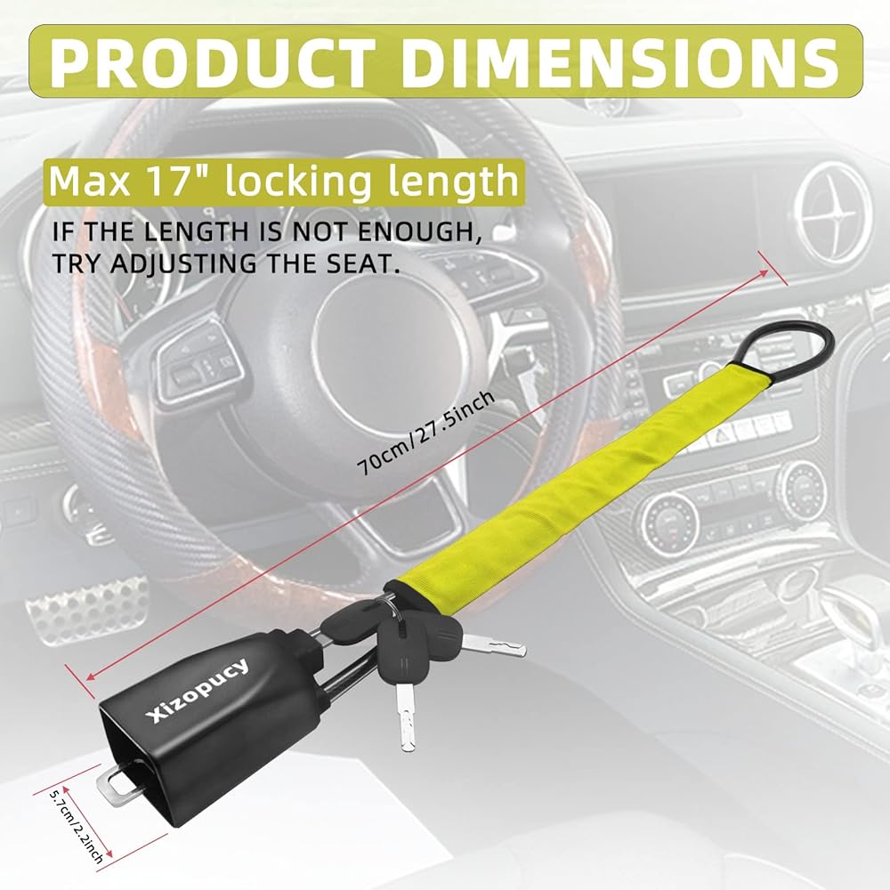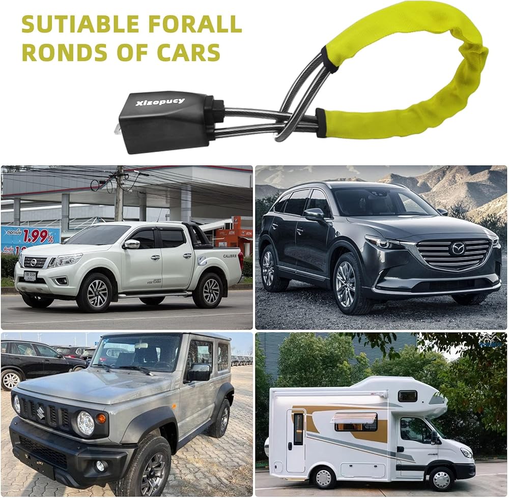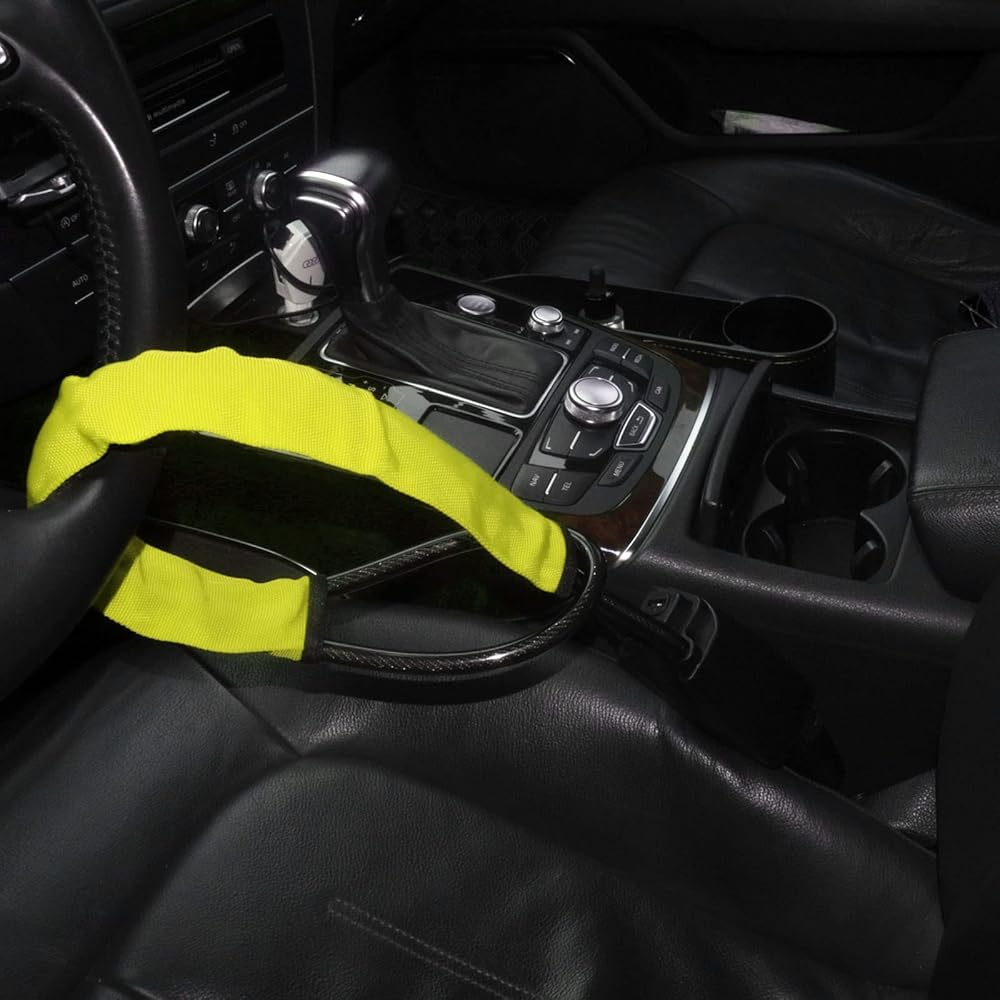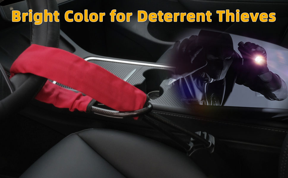 【جودة عالية】جهاز أمان قفل عجلة القيادة الخاص بنا مصنوع من سلك فولاذي مجدول عالي القوة، بسمك 5 مم من المنتجات الأخرى، مما يمنع بشكل فعال جميع أنواع أدوات التقاط القفل والفتح العنيف.