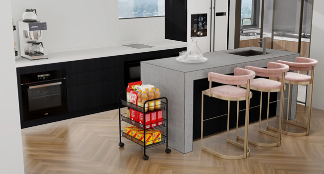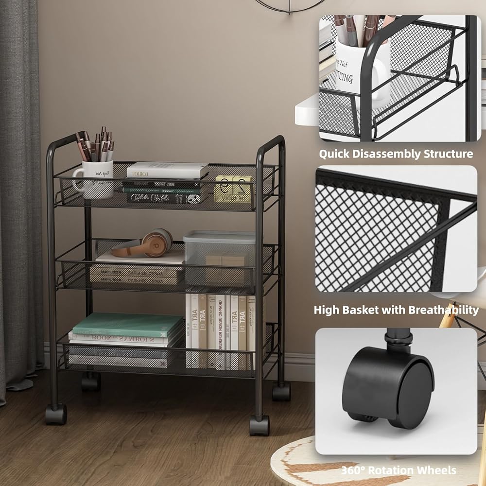 جمالية نظيفة وعصرية مع وظيفة عربة التخزين - يضمن البناء المعدني الأسود على شكل قرص العسل التهوية، ويقلل الغبار من أجل تجربة صيانة نظيفة. توفر هذه العربة الدوارة ذات العجلات تصميمًا أنيقًا، ومثالية لأي مساحة تتطلب لمسة عصرية وأسطح سهلة التنظيف.