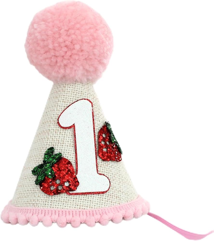 بوهو الفراولة 1st عيد ميلاد الأحمر والوردي قبعة زينة للطفل الفتيات اليدوية قبعة الحفلات فتاة حلوة واحدة التوت تحت عنوان