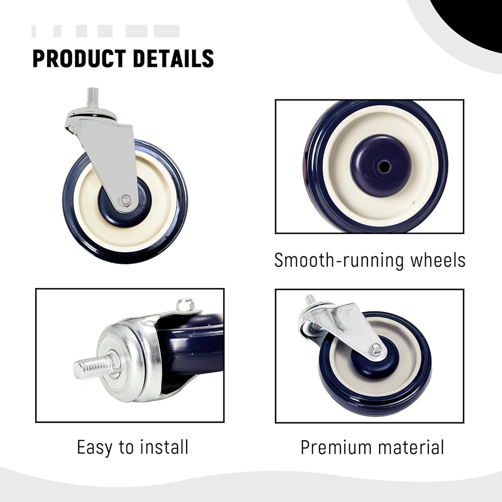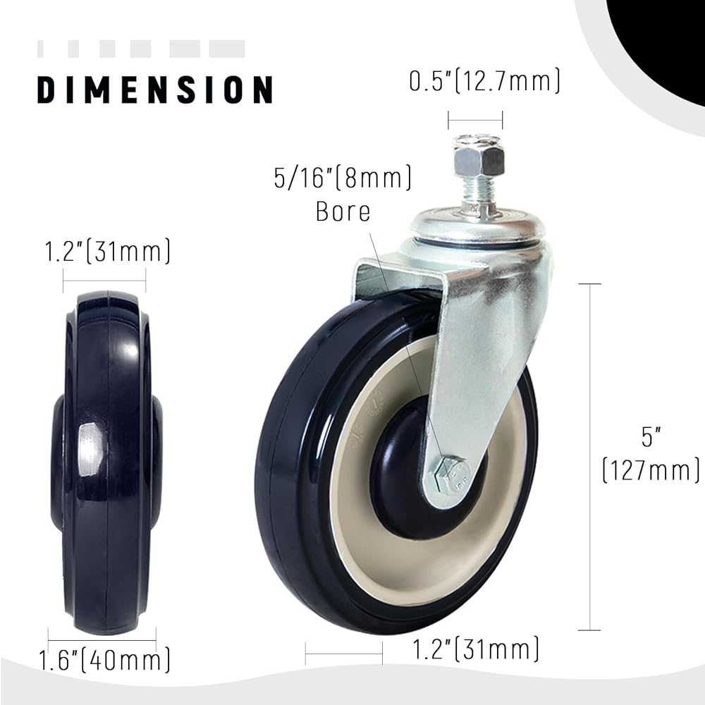 عجلات عربة التسوق عالية الجودة: تقدم DUPDMKIN مجموعة من عجلات العجلات مقاس 5 بوصات مصنوعة من البولي يوريثين الفائق، مما يضمن مقاومة قوية للتآكل، وامتصاص الصدمات الصامت، وأداء مقاوم للتآكل.