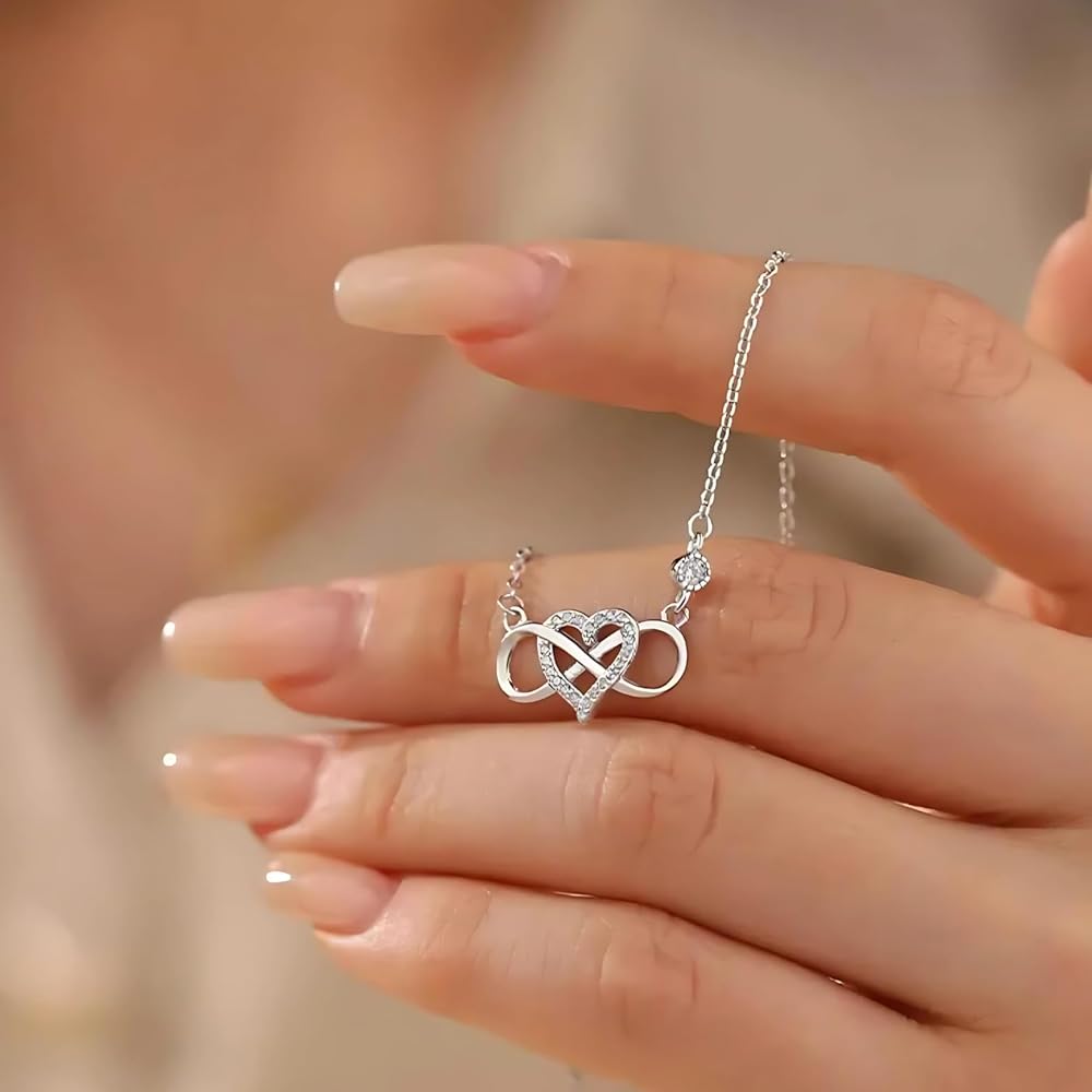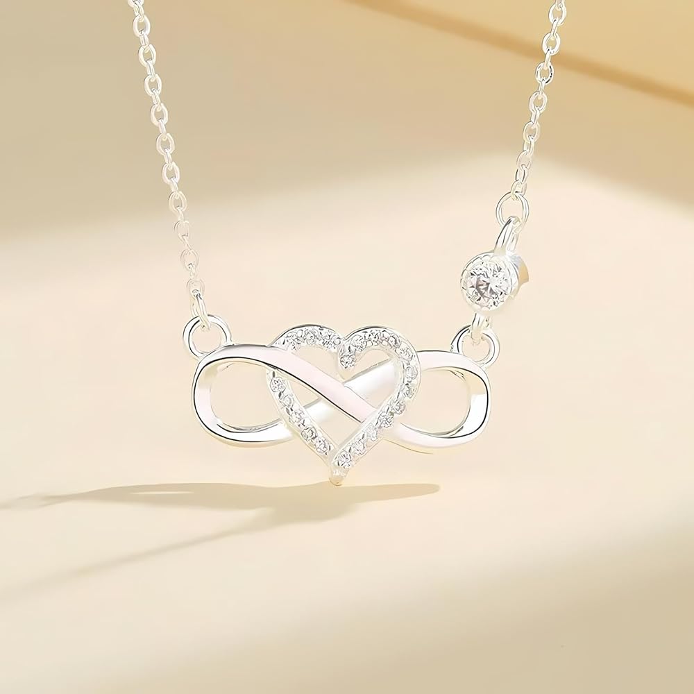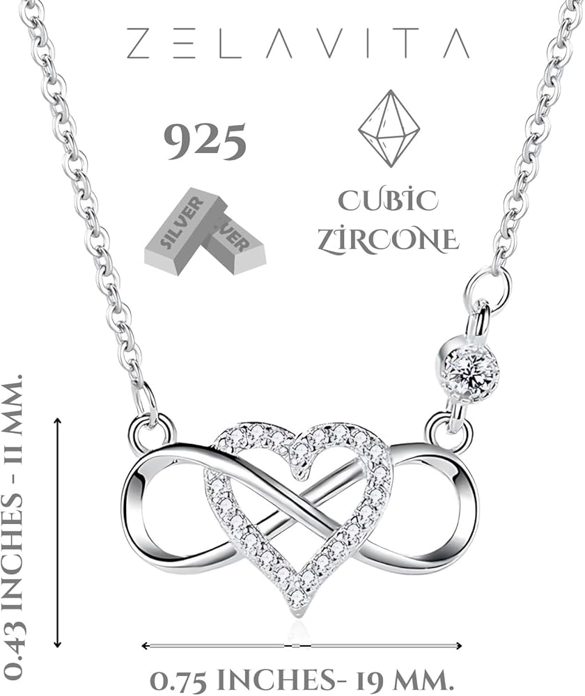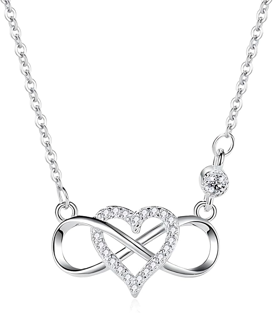 • قلادة من الفضة الاسترليني مع قلادة على شكل قلب لا نهاية له
