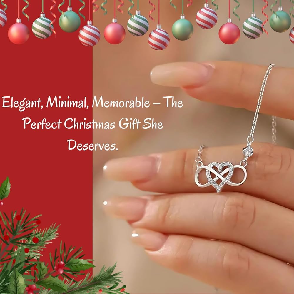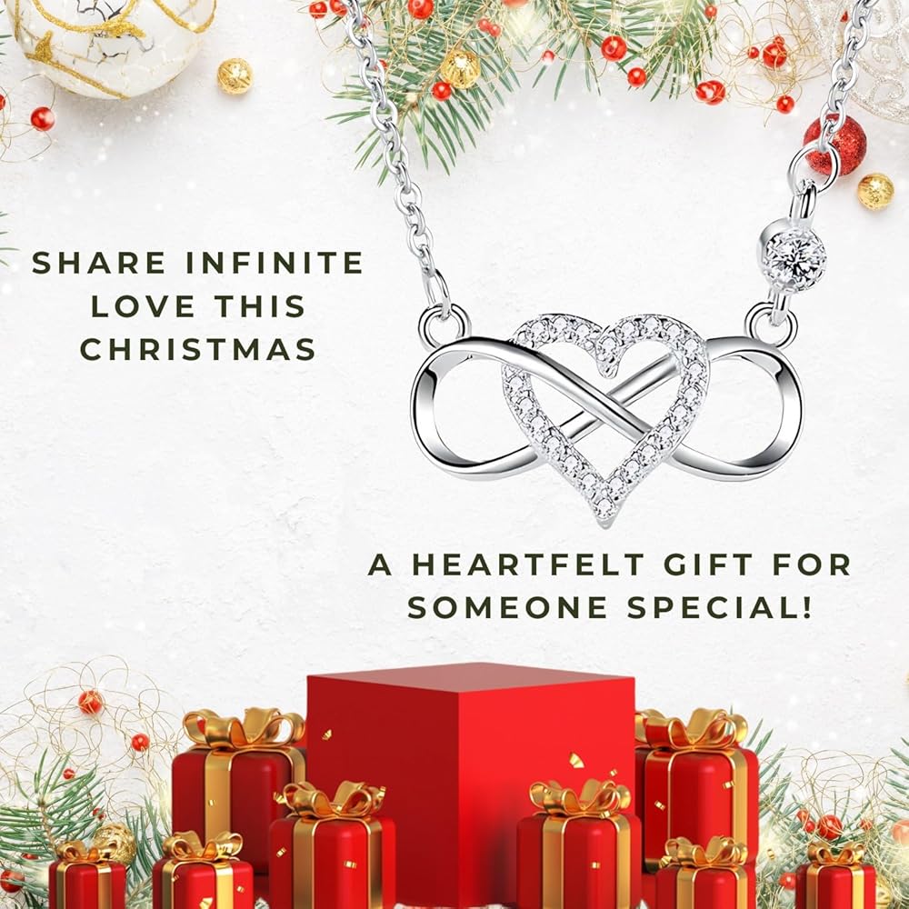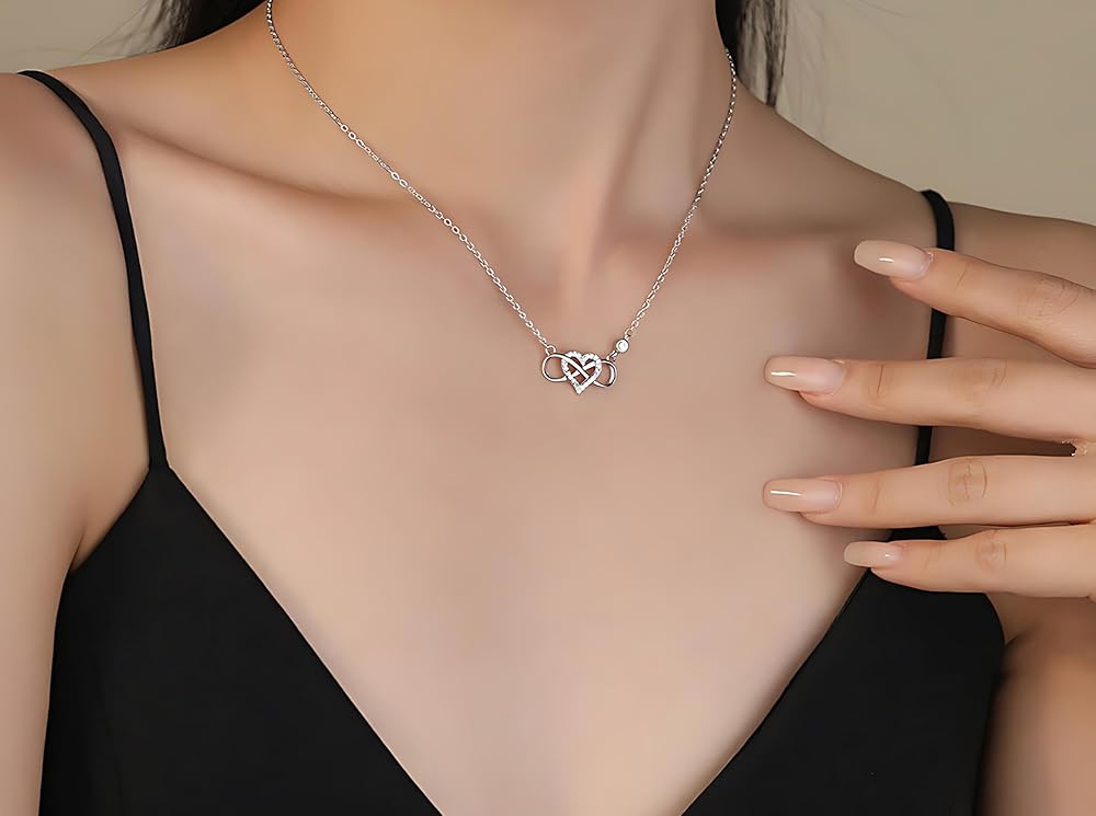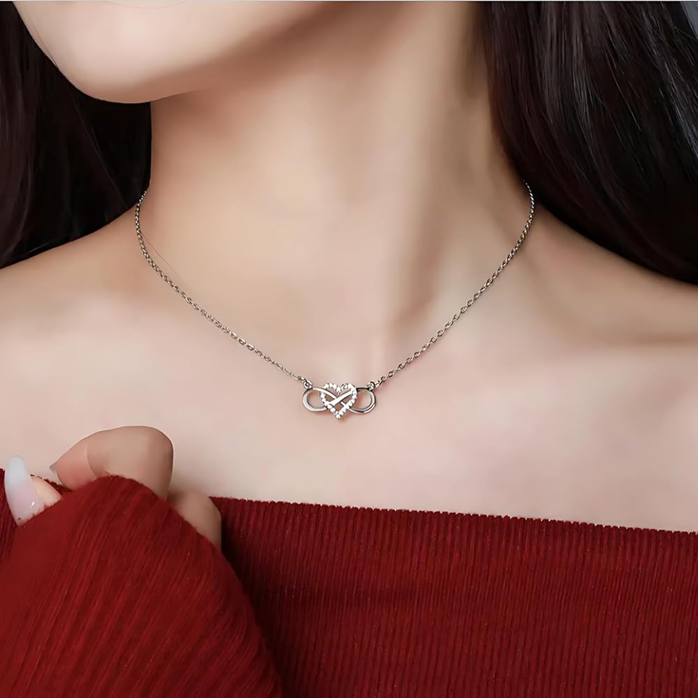 • قلادة من الفضة الاسترليني مع قلادة على شكل قلب لا نهاية له