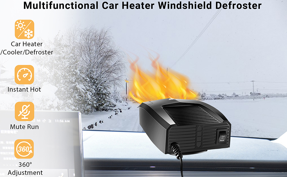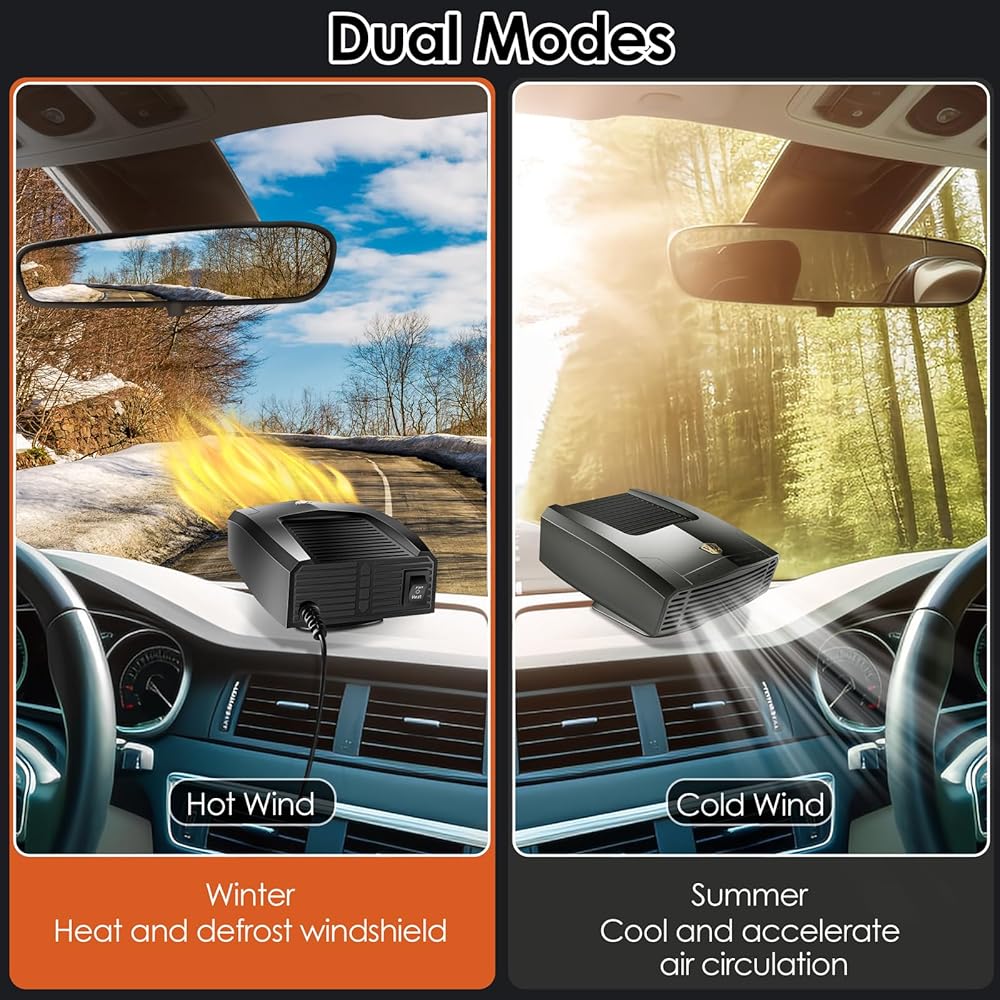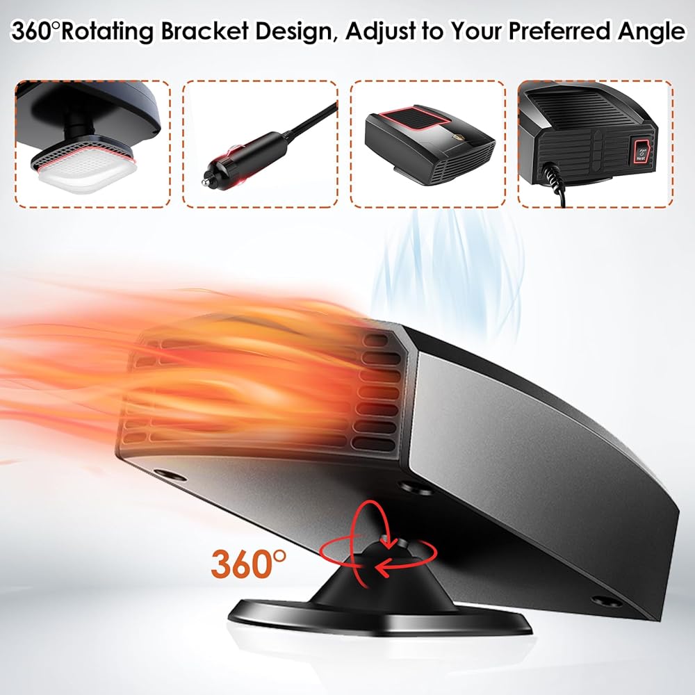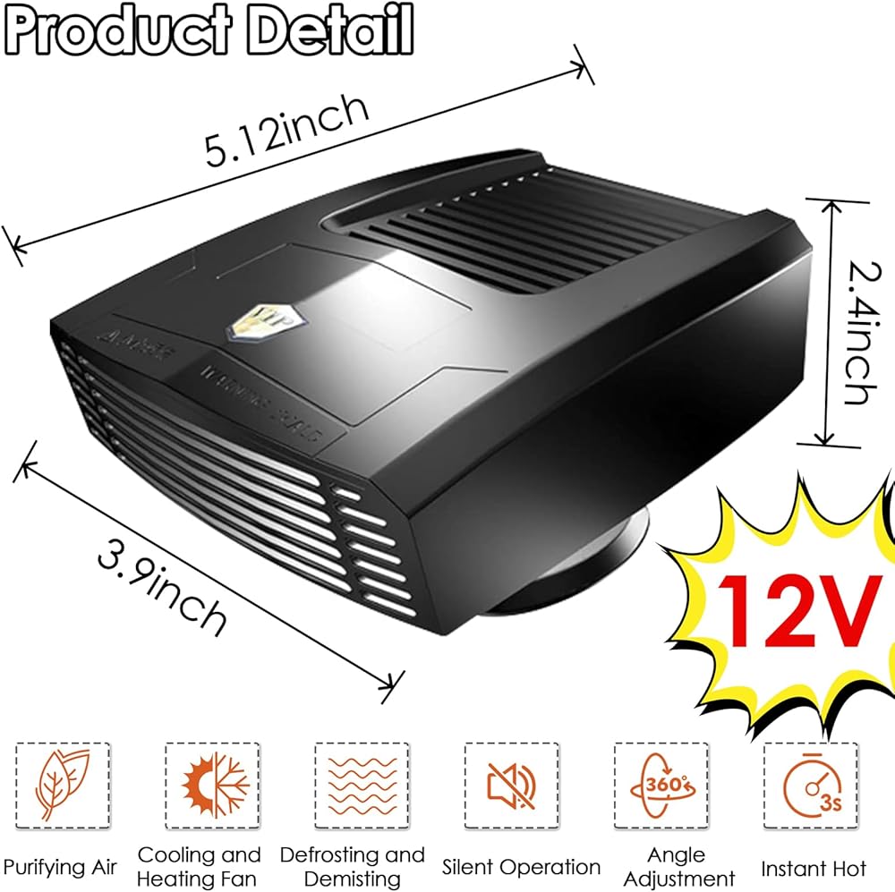 【متعدد الاستخدامات وقابل للتعديل】سخان السيارة الخاص بنا متعدد الوظائف وقابل للتعديل لتلبية احتياجاتك في أي موسم. تتميز بقابس ولاعة السجائر ويمكنها التبديل بين الهواء الساخن والبارد، مما يجعلها مثالية لكل من الصيف والشتاء. مع مصدر هواء بزاوية واسعة 90 درجة، ودوران أفقي 360 درجة، ودوران عمودي 60 درجة، يمكنك ضبط اتجاه تدفق الهواء حسب رغبتك. استمتع بتجربة قيادة مريحة وقابلة للتخصيص مع سخان السيارة متعدد الاستخدامات.