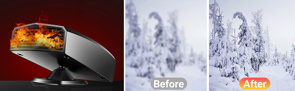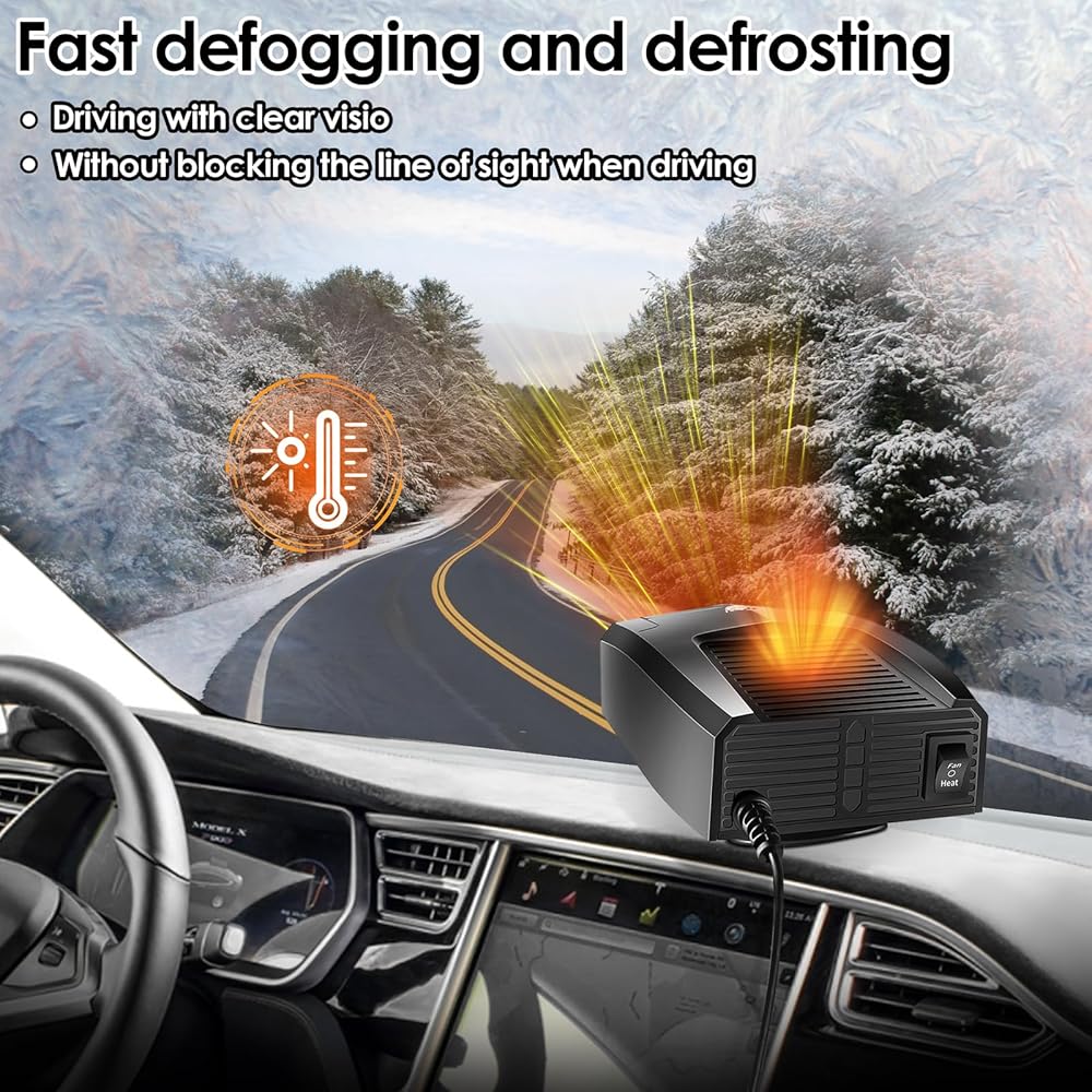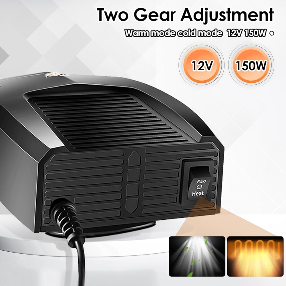تسخين سريع: يتميز سخان السيارة المطور بقدرة 12 فولت بقوة مذهلة تبلغ 150 وات، مما يوفر درجة حرارة هواء متزايدة لإزالة الصقيع والضباب والضباب بسرعة وكفاءة من الزجاج الأمامي لسيارتك والنوافذ الجانبية والنافذة الخلفية. قل وداعًا لحجب الرؤية وأهلاً بتجربة قيادة واضحة وآمنة.