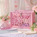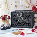 تصميم مجوف: صندوق بطاقات هدايا الزفاف مصنوع من مادة بلاستيك PVC الممتازة، مصنوع بتصميم فريد مجوف وحرفية رائعة. تصميم قابل للطي، سهل التجميع والفك، سهل التخزين بعد يوم خاص، قابل لإعادة الاستخدام لسنوات عديدة.