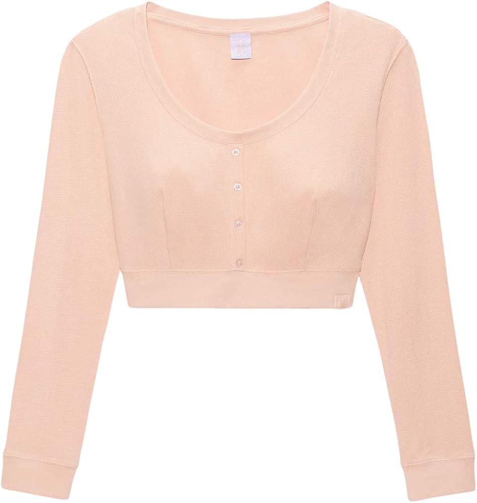 - Thermal fabric; ribbed band at hem and sleeves; darting at sides