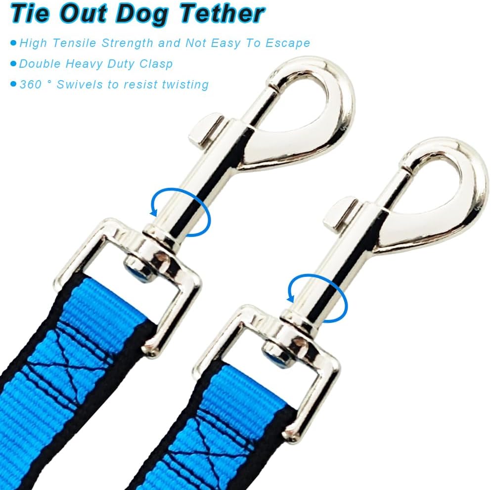 • مقود ربط - مشبك مطلي بالنيكل عالي التحمل على كل جانب مصمم، يدور 360 درجة لمقاومة الالتواء، وقوة شد عالية وليس من السهل الهروب. يمكنك ربط أحد طرفي الشجرة والوتد والسياج لتحرير يديك، ومن السهل فتحه وإغلاقه، مما يجعل الكلب حرًا وآمنًا.