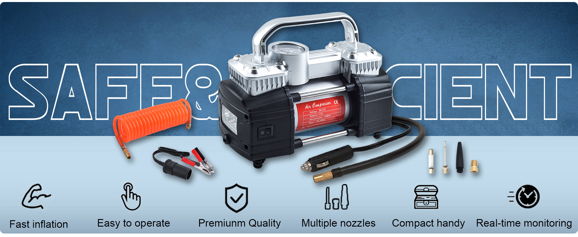 【ملاحظة】: يرجى ملاحظة أنه إذا لم يعمل جهاز النفخ، فيرجى التأكد من استخدام مشبك البطارية. نظرًا لأن مضخة الهواء ذات الأسطوانتين تحتوي على تيار كبير نسبيًا، حوالي 25 أمبير، فإن بعض ولاعات السجائر في السيارة لا تدعم التيار القوي. تقدم GSPSCN خدمة عملاء على مدار 24 ساعة.