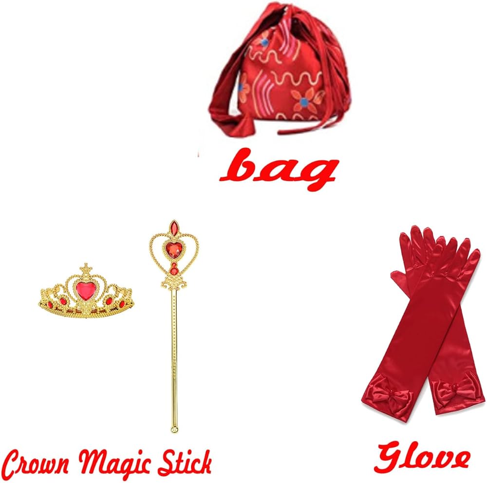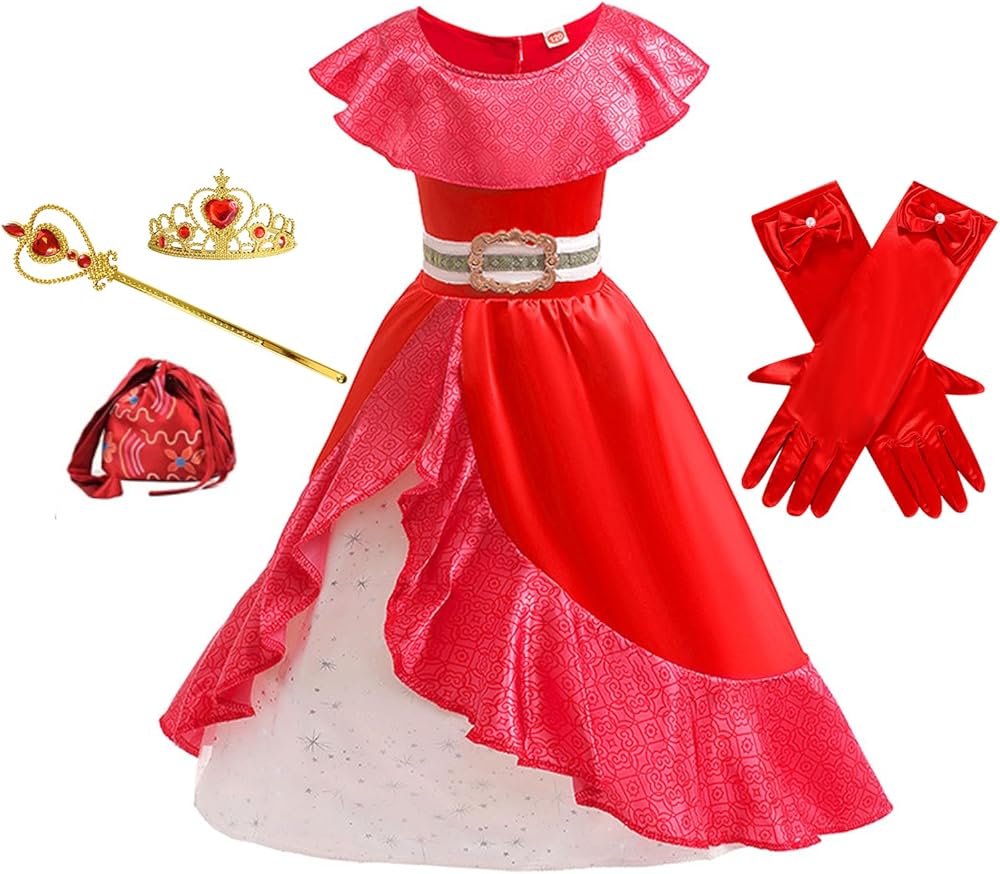 Package includes an Elena dress, crown, gloves, magic wand, and bag