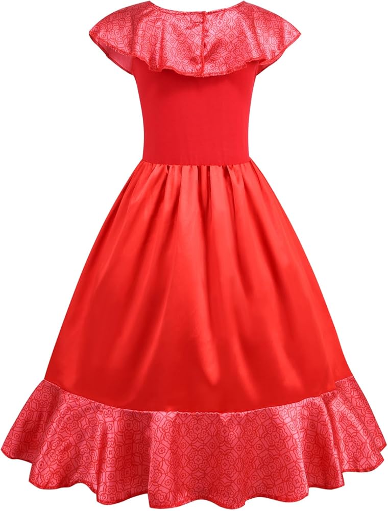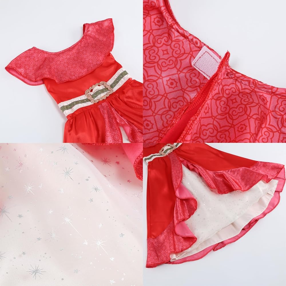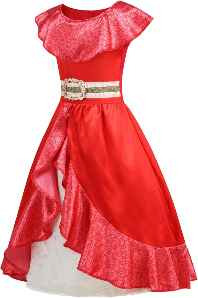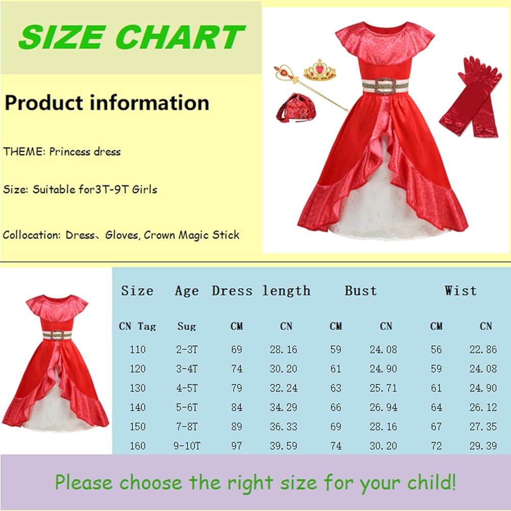 Make your little princess feel like royalty with this charming Elena costume. The package includes an Elena dress, a crown, gloves, a magic wand, and a bag. The dress is made of skin-friendly and comfortable polyester fabric and comes in multiple sizes. Please refer to the size chart in the description before making a purchase. It also makes a great birthday gift for girls. Order now and let your child live out their royal dreams!