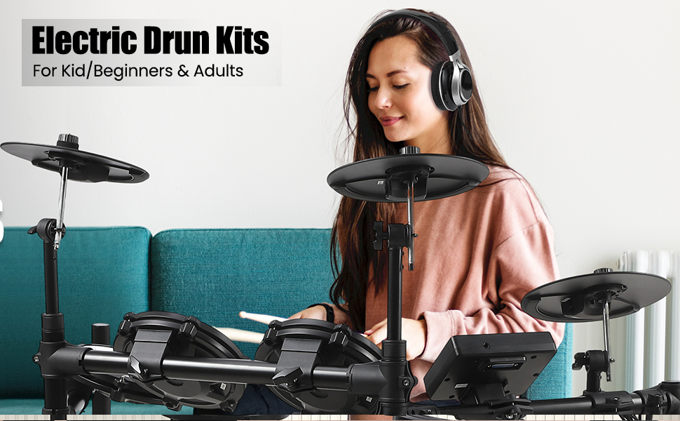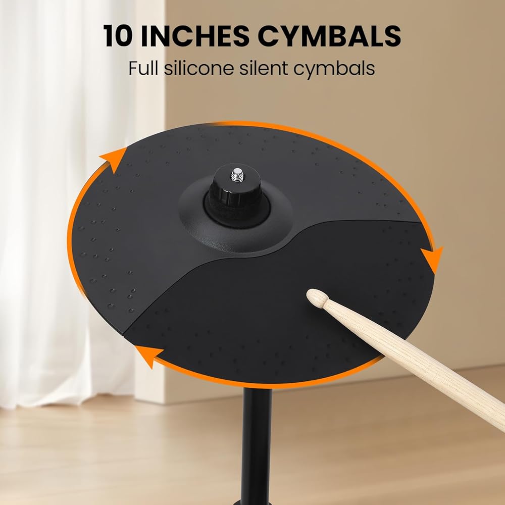 【مثالية للاستخدام المنزلي】قم بتمرين مهارات الطبول الخاصة بك في أي وقت باستخدام مجموعة الطبول الإلكترونية، التي تتصل بسماعات الرأس لتجنب إزعاج الآخرين في المنزل/الشقة، كما يمكن للهيكل القابل للطي سهولة التخزين وعرش الطبل المرن مناسب لتعديل الارتفاع.