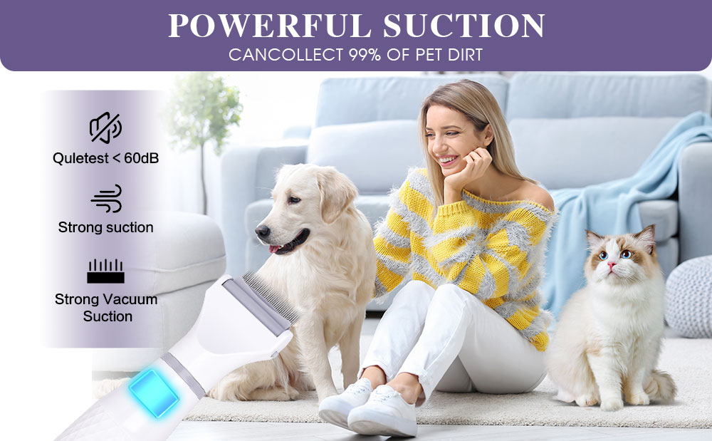 تصميم منخفض الضوضاء: ضوضاء مكنسة العناية بالحيوانات الأليفة الخاصة بنا تبلغ 60 ديسيبل فقط، مما يجعل كلابك الأليفة تشعر بالاسترخاء ولا تخاف أثناء التصفيف.
