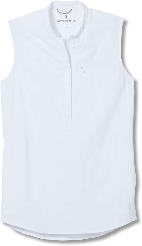 This snap-front tunic handles serious adventure with advanced Expedition performance. Delivering added stretch, the 100% recycled polyester wicks, dries fast, and protects from the sun. Dual hand pockets store essentials, and hidden zip pocket secures smartphone. HeiQ Stain Away technology helps keep it clean on long trips. The style is clean and feminine.