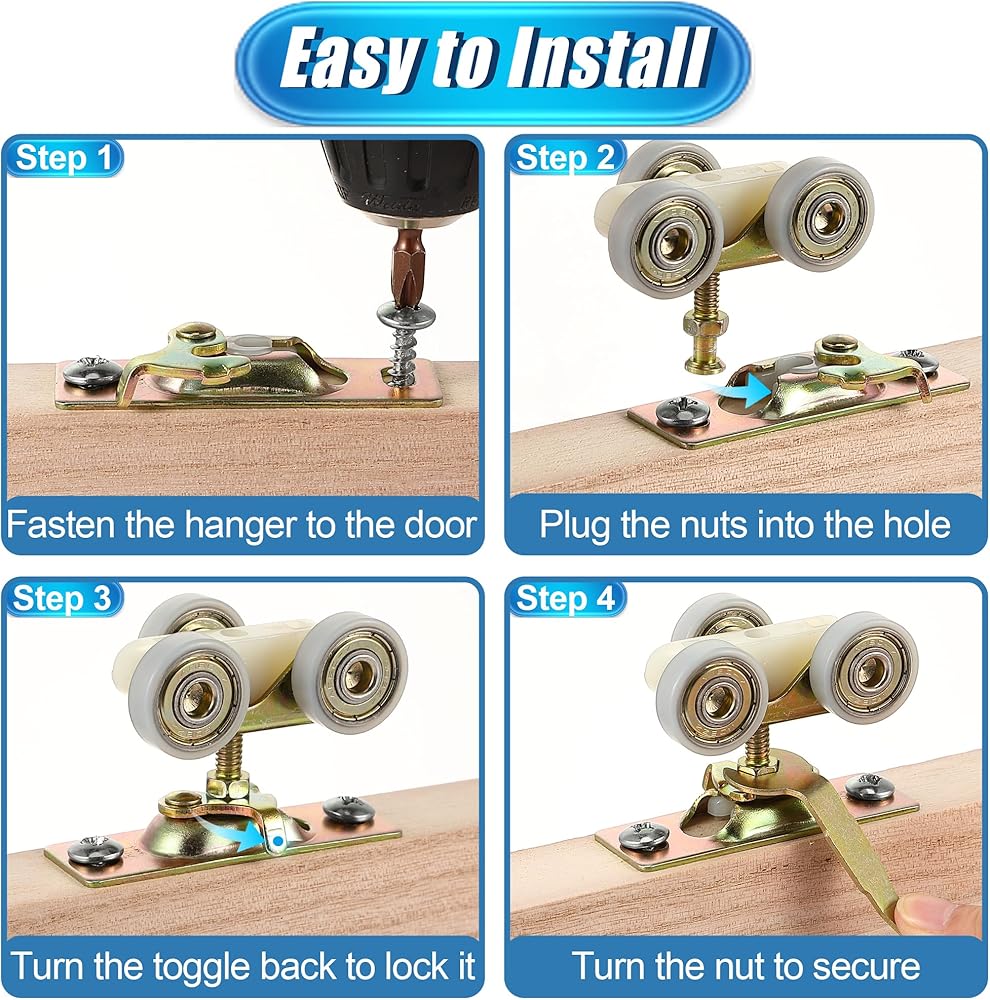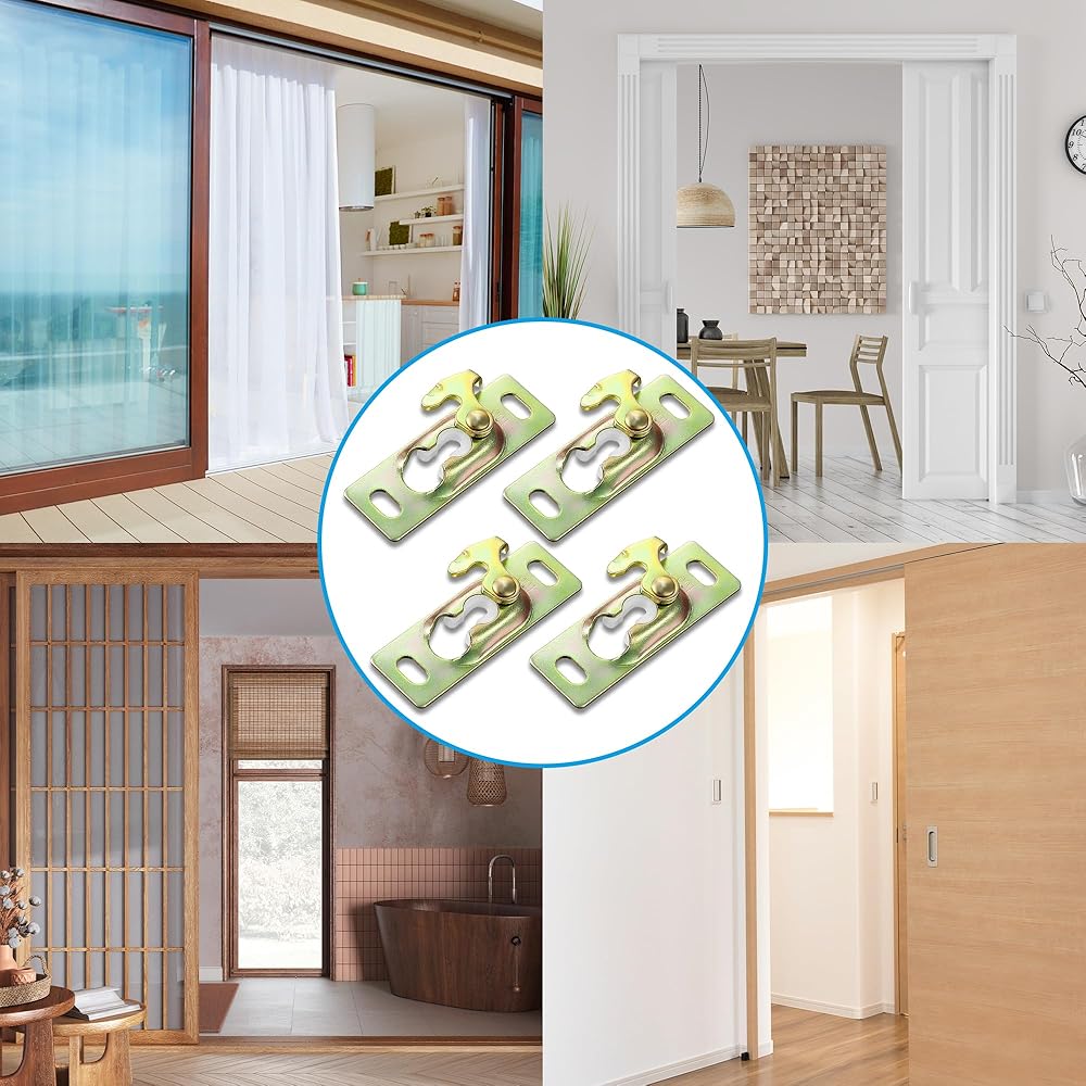 This pocket door hanger and latch are made of high hardness metal, stronger and safer than plastic ones, 2 inch long screws will grip the door panel securely, won't fall off after long time use. The surface electroplated color zinc can effectively prevent rust.