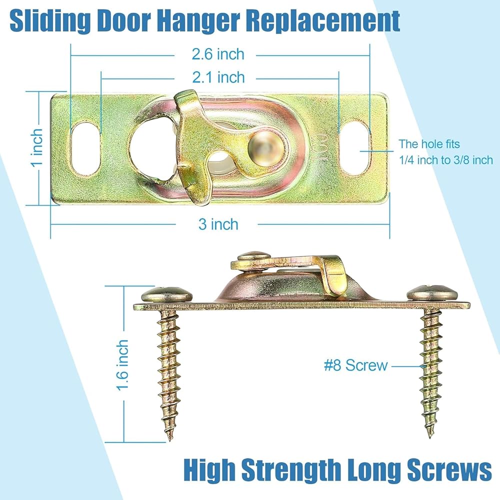 The sliding door hanger is made of universal 3 inch long by 1 inch wide, and the connection is compatible with 1/4 inch to 3/8 inch nuts, works for most pockets and sliding doors.
