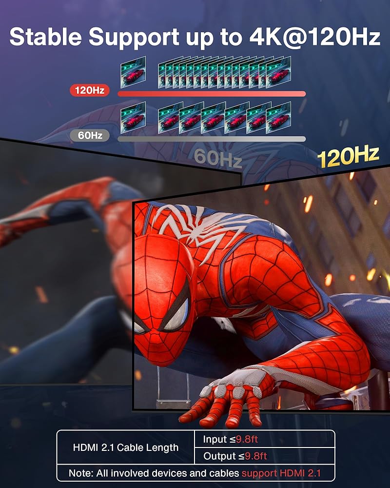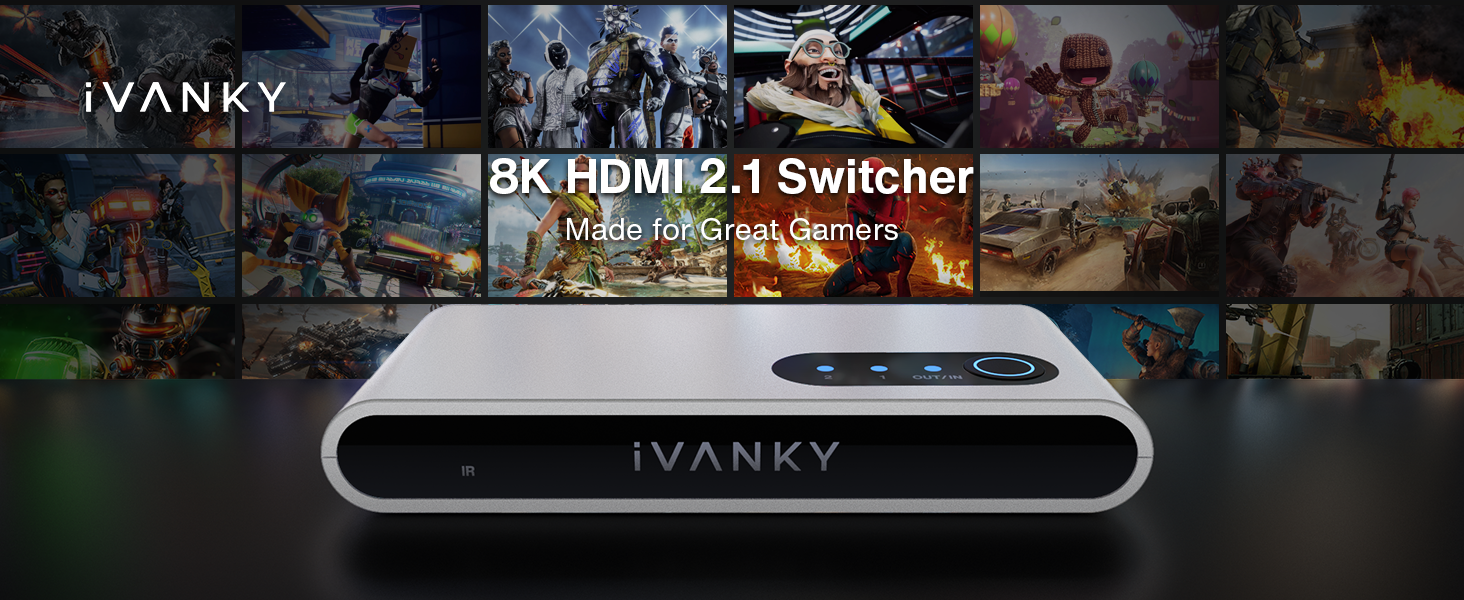 🚀 تجربة ألعاب لا مثيل لها بدقة 4K@120 هرتز انغمس في عالم الألعاب النابض بالحياة باستخدام مفتاح iVanky 4K@120 هرتز HDMI، حيث تقفز كل التفاصيل من الشاشة بوضوح نابض بالحياة. استمتع بالمرئيات السلسة بمعدل 120 إطارًا في الثانية وتقنية HDR التي تعيد تعريف الانغماس. (يرجى التأكد من أن جميع الأجهزة والكابلات المتصلة متوافقة مع HDMI 2.1 للحصول على الأداء الأمثل. يوصى باستخدام كابل HDMI 2.1، بطول مقترح يبلغ 3.3 قدم للمدخلات و6.6 قدم للمخرجات.)