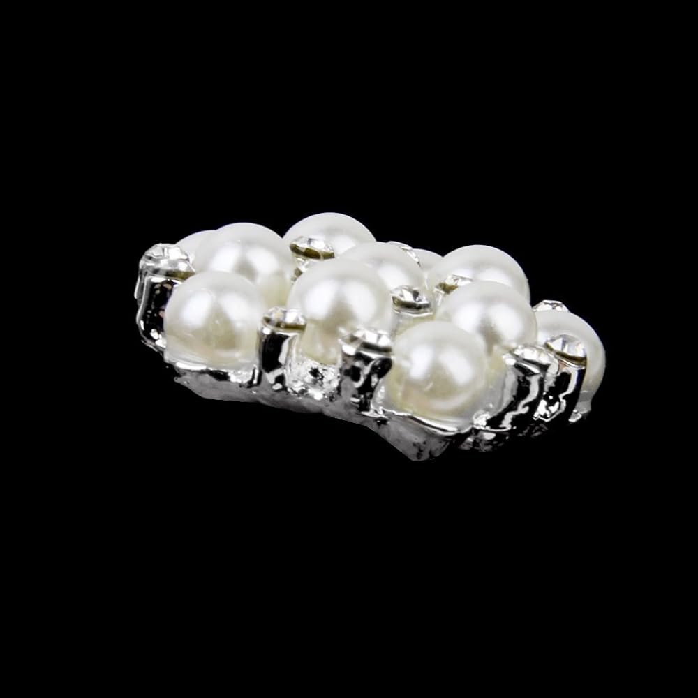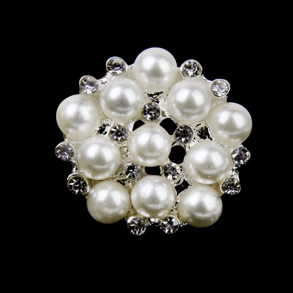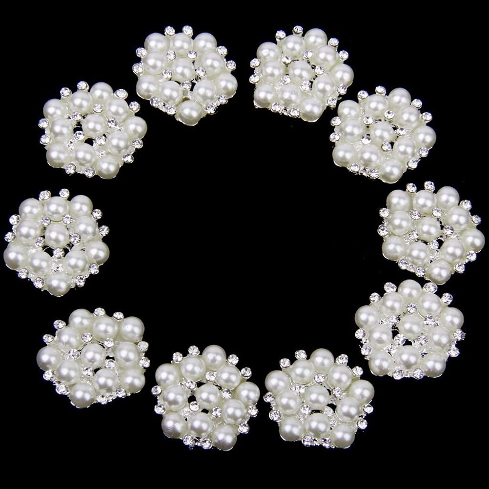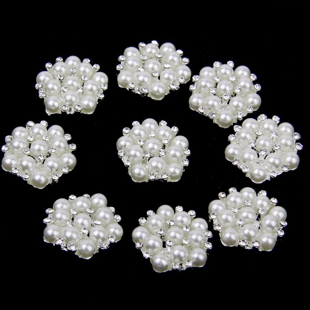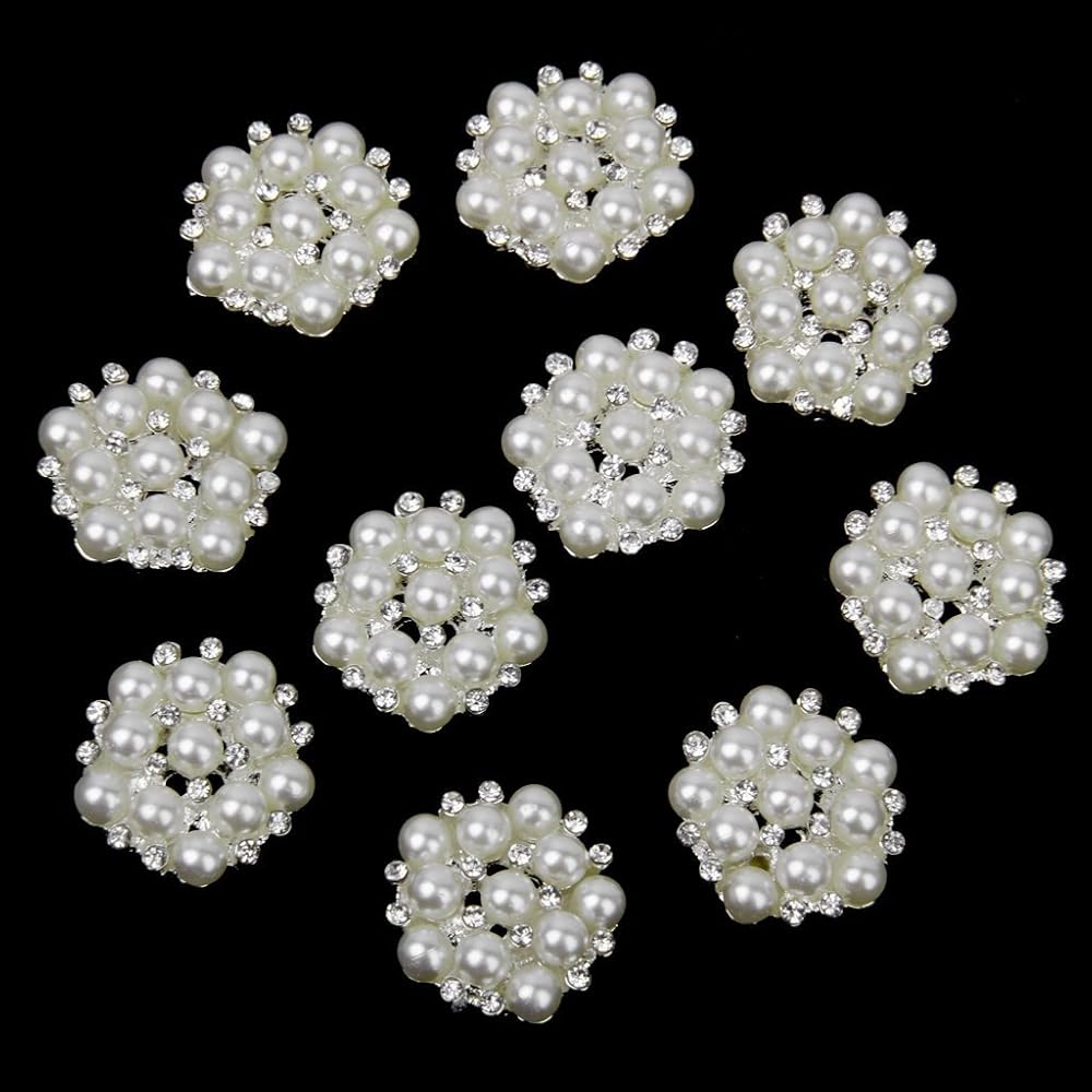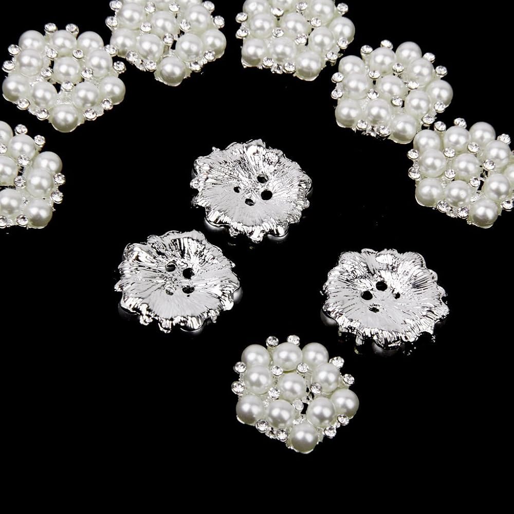 20mm Rhinestone Faux Pearl Flat Back Sew on Buttons Embellishments Flower Shape (Pack of 10pcs)