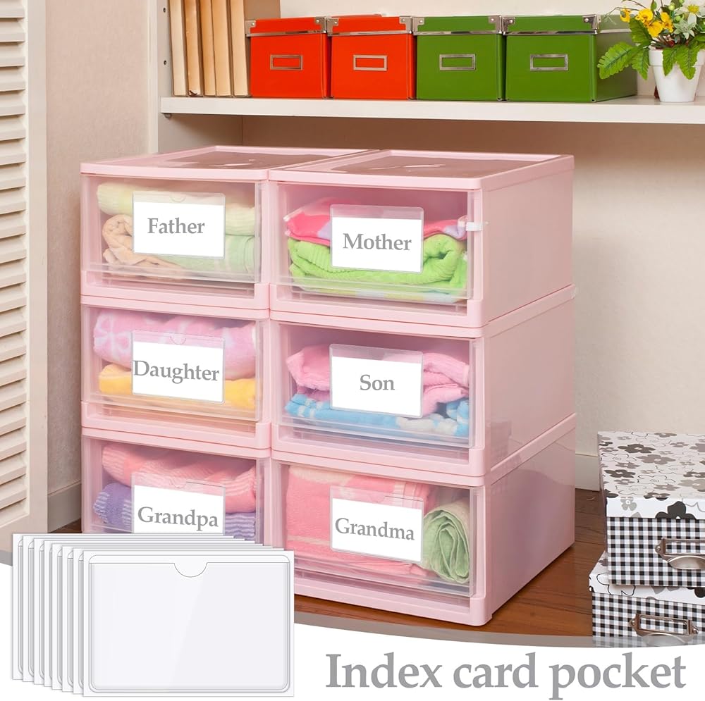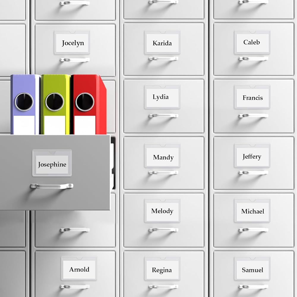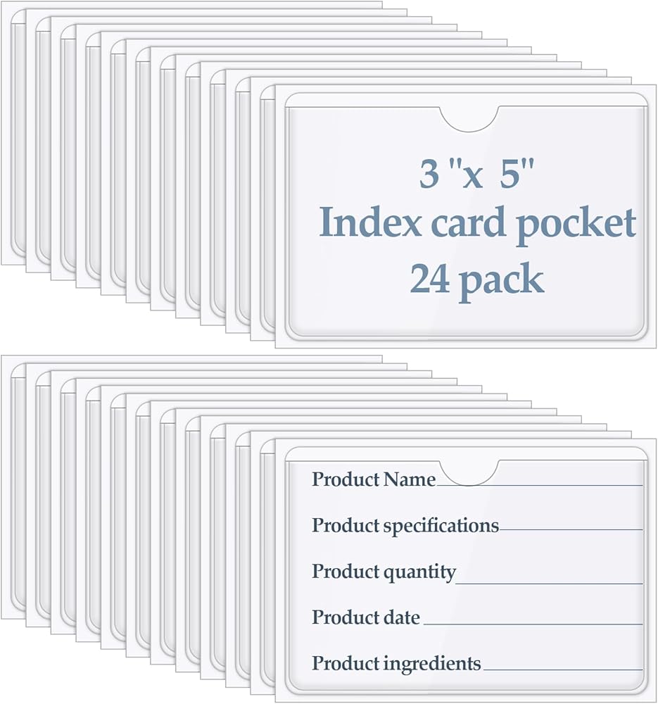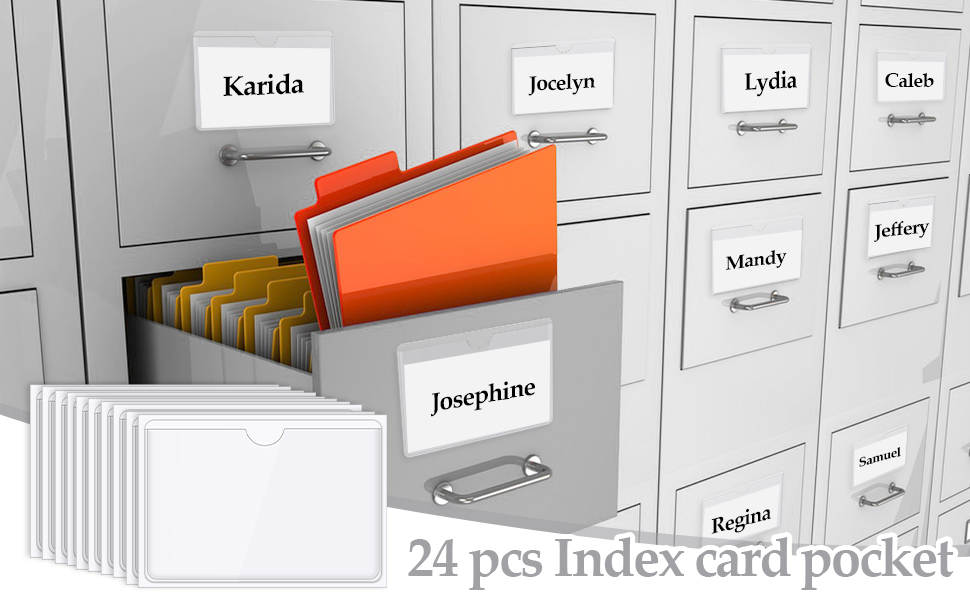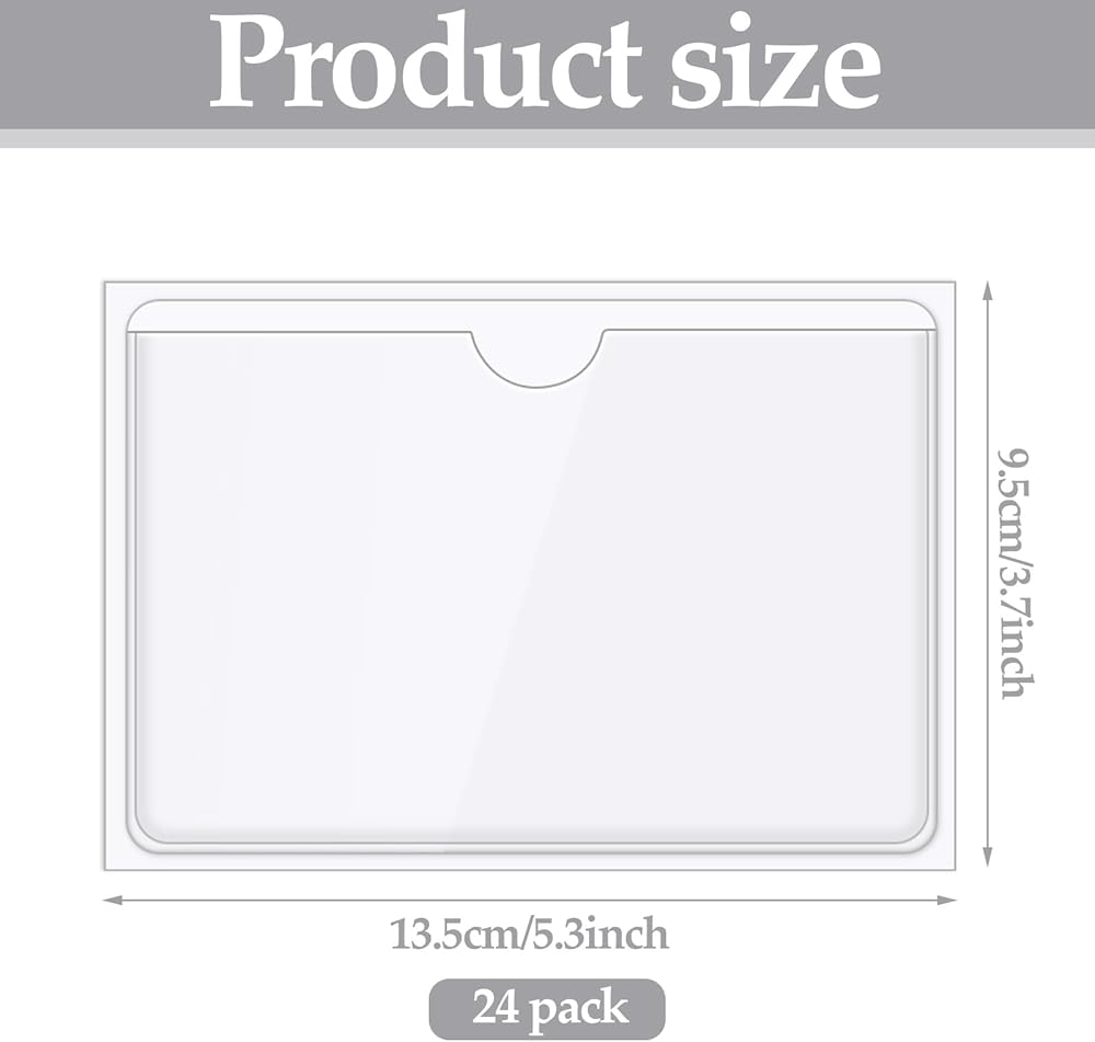 تشمل العبوة: سوف تحصل على 24 قطعة من حاملات بطاقات الفهرس التي تفتح من الأعلى، والجزء الخلفي ذاتي اللصق يسمح لك باللصق بسهولة على أي سطح أملس.
