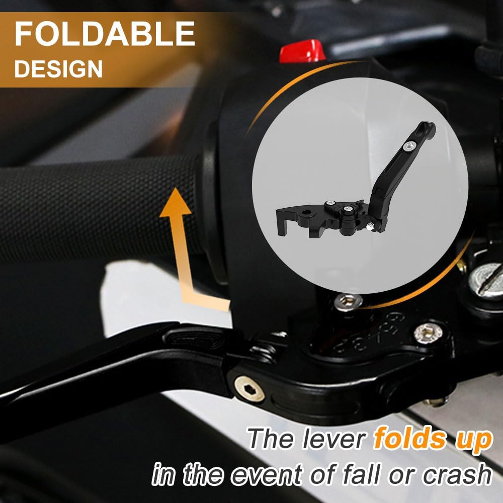 【Foldable】''Foldable'' mainly stops the lever from breaking in case that the bike goes on a crash, because it can fold up automatically.