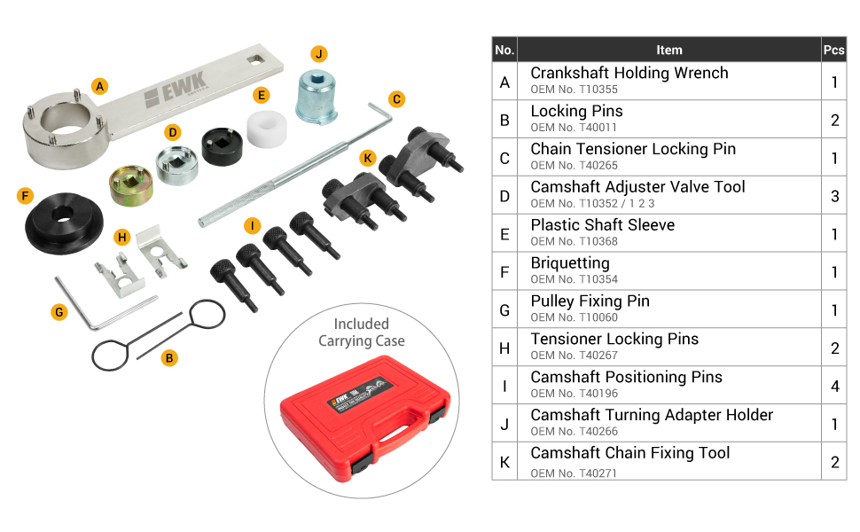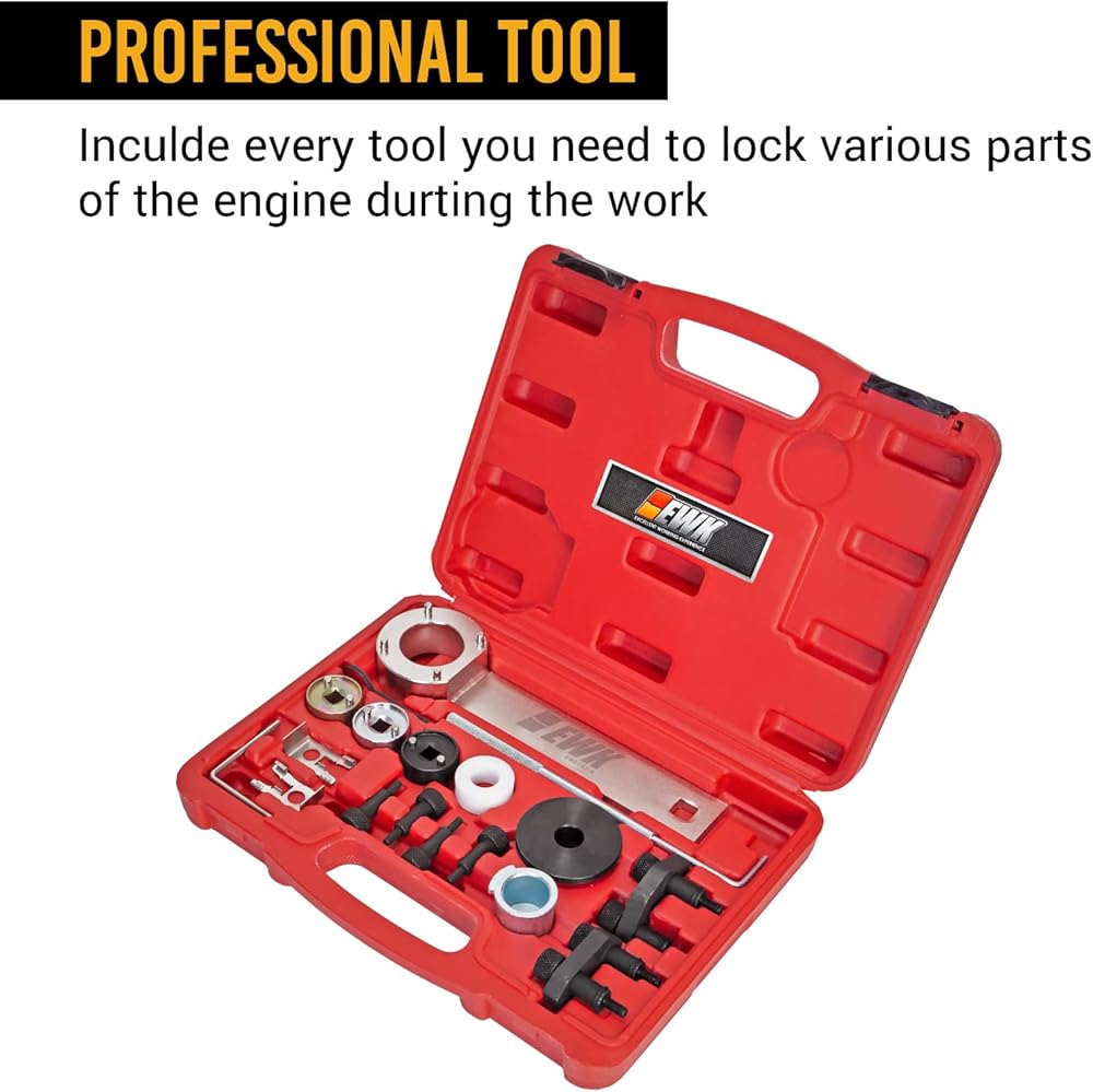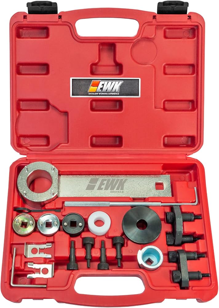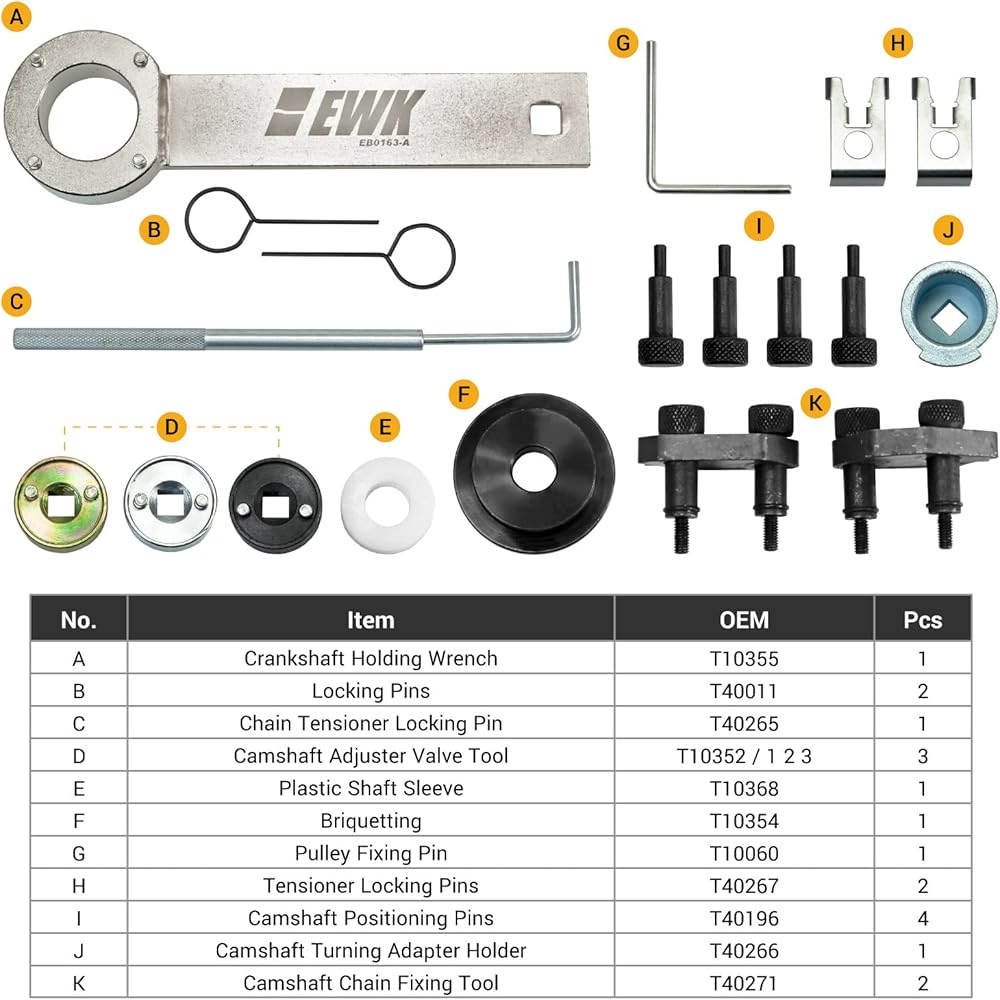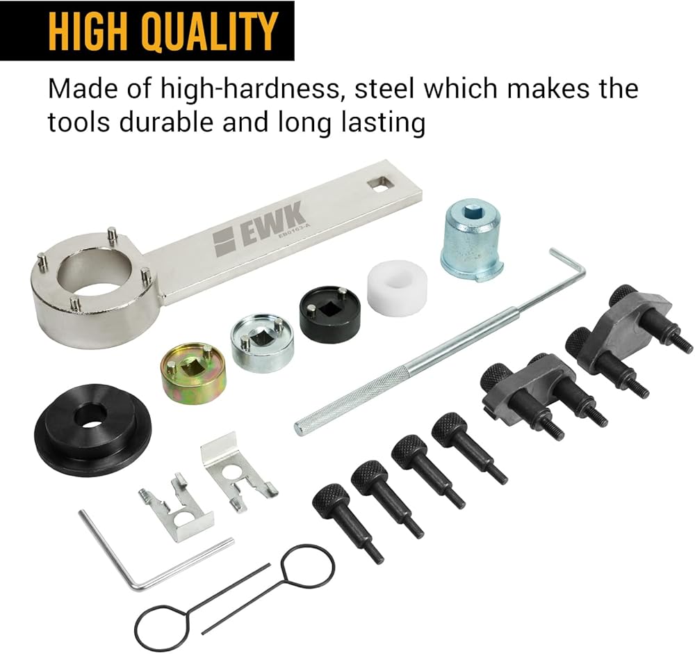 - 【يجب اقتناؤه】تساعدك مجموعة أدوات توقيت محاذاة عمود الكامات والعمود المرفقي EWK على محاذاة موضع توقيت الكاميرا والكرنك على محركات البنزين VW 1.8 و2.0L TFSI / TSI.