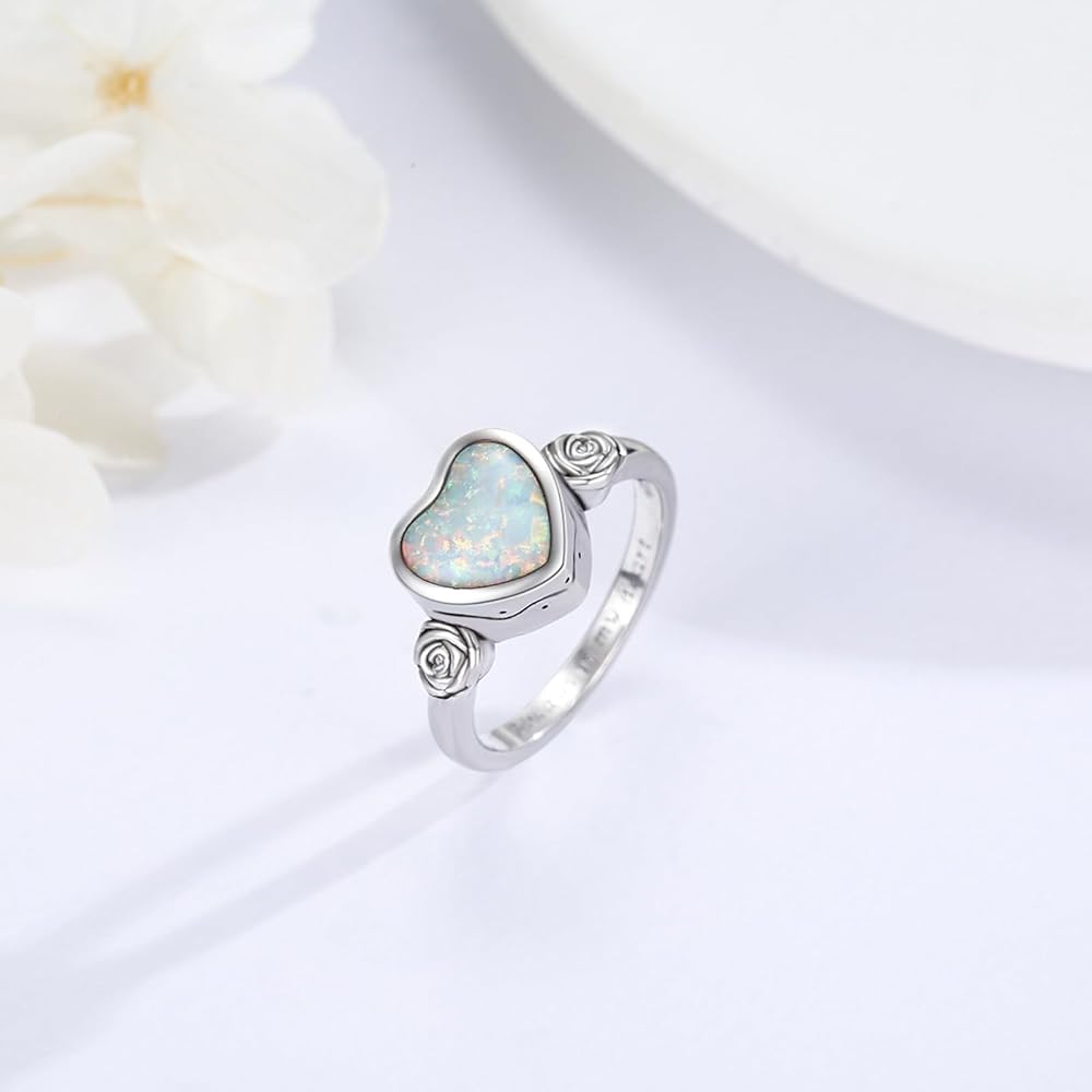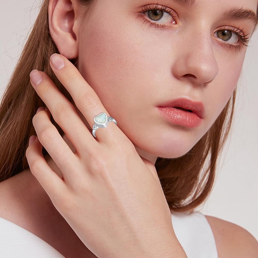【مادة الفضة الإسترلينية】خاتم حرق القلب هذا مصنوع من الفضة الإسترلينية عيار 925 المضادة للحساسية مع أوبال أبيض. إنه خالي من الرصاص والنيكل ومريح في الارتداء، مما يجعله خيارًا آمنًا وأنيقًا.
