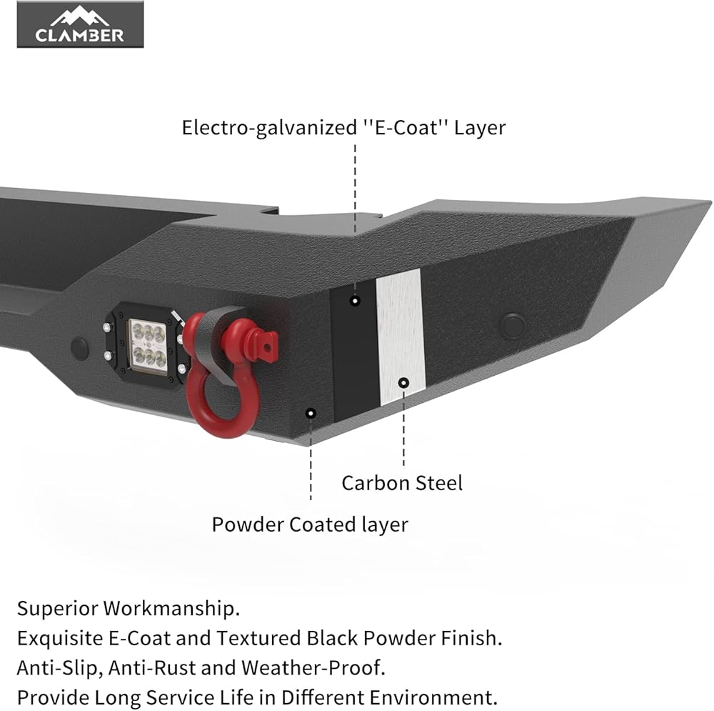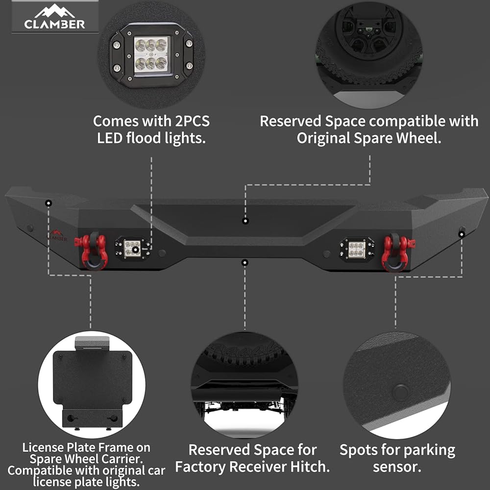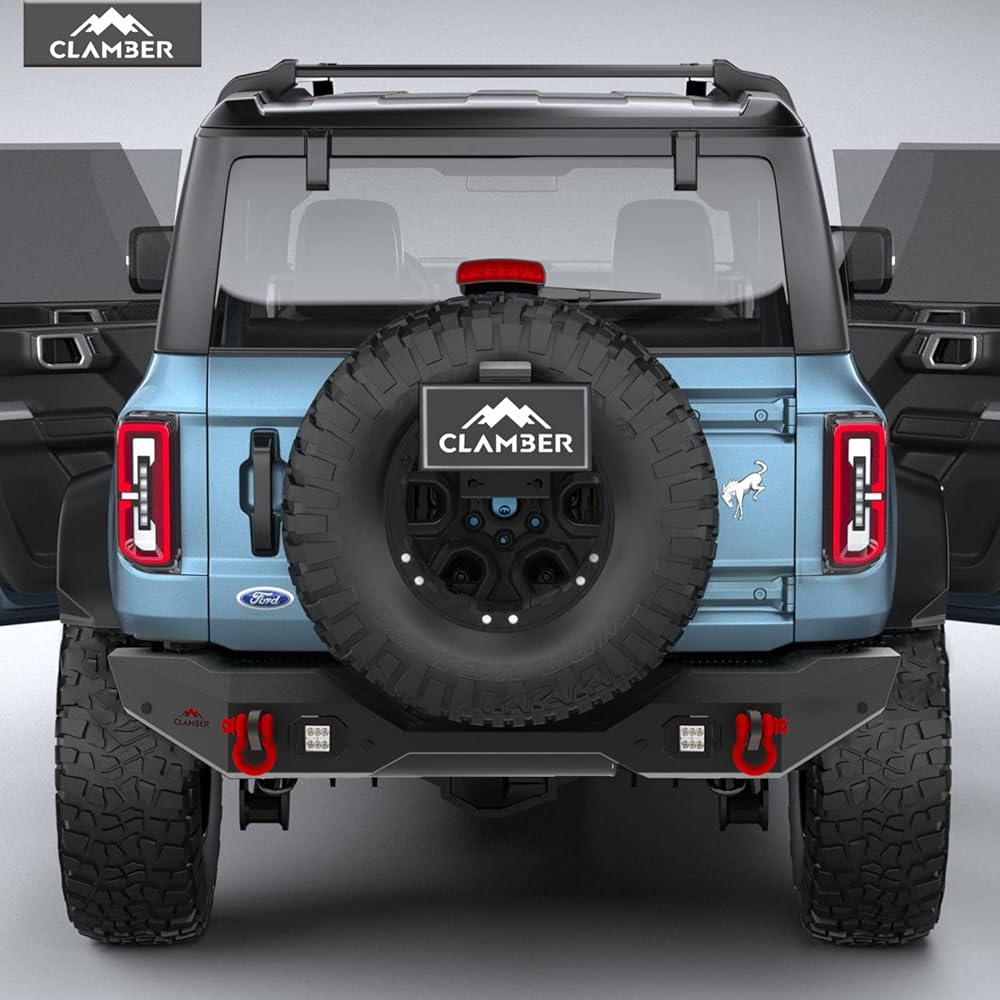 صدام خلفي متوسط ​​العرض فورد برونكو 2021-2024 | واقي مصد خلفي للطرق الوعرة | الصلب الكربوني الثقيل | حلقات على شكل حرف D | قطعتان من الأضواء الكاشفة | أماكن لأجهزة استشعار ركن السيارة وحامل إضافي للوحة الترخيص