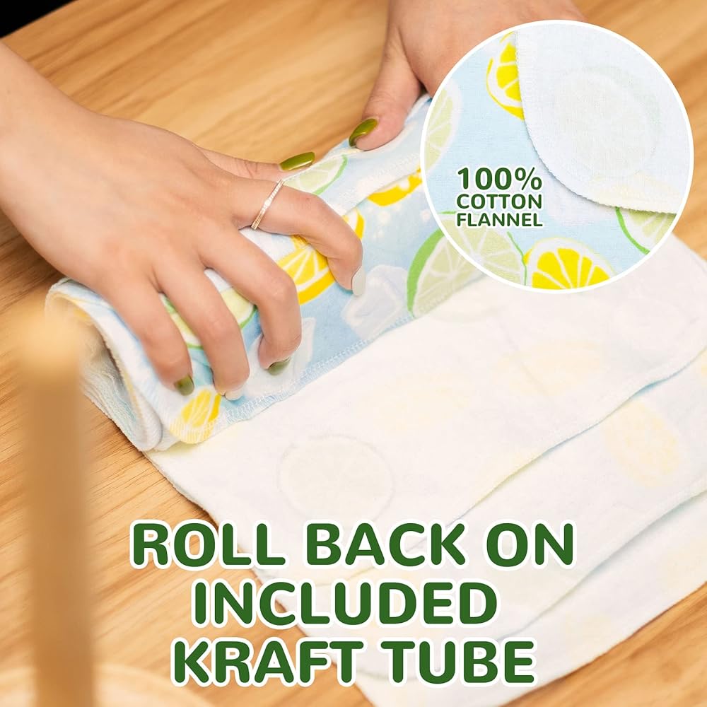 • مناشف ورقية قابلة لإعادة الاستخدام - قلل من نفاياتك باستخدام بديل المناشف الورقية القابل لإعادة الاستخدام. تتضمن 12 منشفة من الفانيلا القطنية الماصة ملفوفة على لفافة مناشف ورقية من الورق المقوى قابلة لإعادة الاستخدام. اغسلها قبل الاستخدام، ثم قم برصها ولفها واحدة تلو الأخرى على اللفة. وأنبوب الورق المقوى يناسب معظم حاملي الأنسجة.