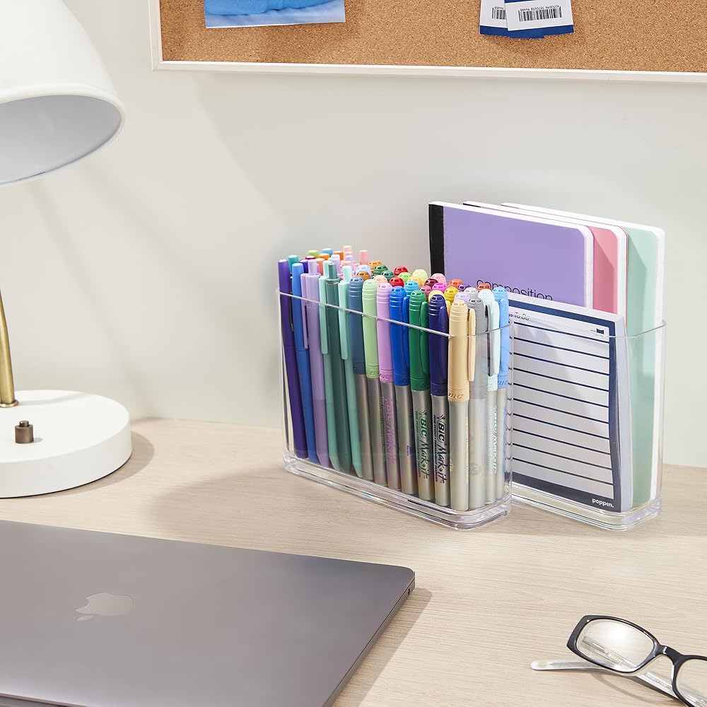 هذه المجموعة المكونة من قطعتين بمقاس 17.78 سم × 6.35 سم × 12.7 سم مناسبة تمامًا على أي طاولة أو سطح عمل. استخدمها جنبًا إلى جنب أو في مواقع منفصلة. رائعة أيضًا لحمل الورق في غرف الأعمال اليدوية أو لوحات الزينة.