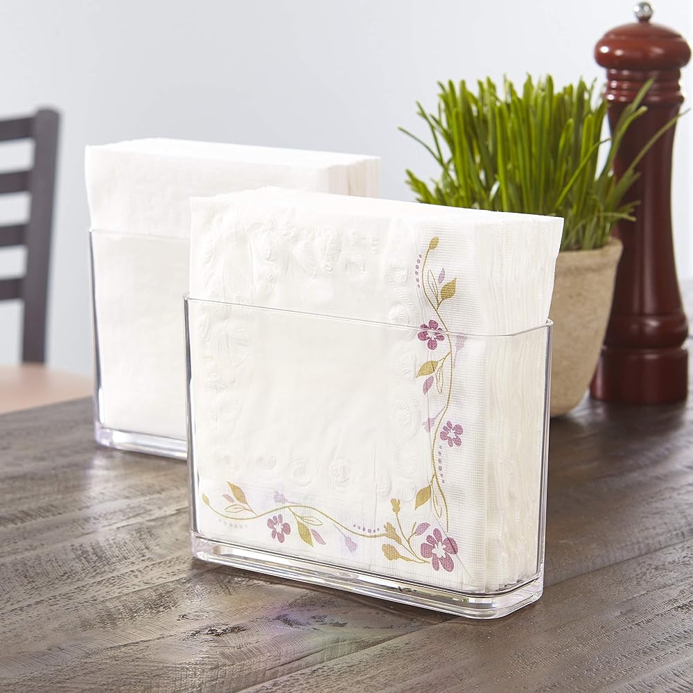 تصميم عمودي موفر للمساحة يخزن المناديل في وضع مستقيم، مما يلغي الحاجة إلى أكوام من المناديل الفوضوية التي تأخذ مساحة طاولة قيمة. يتناسب التصميم النحيف بشكل مثالي مع أسطح العمل بجانب الأجهزة والمزيد.