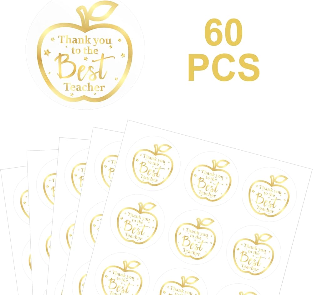 ملصقات يوم تقدير المعلمين G2PLUS، 60 قطعة شكرًا لك على أفضل ملصقات المعلم، ملصقات شكر للمعلم مقاس 2 بوصة، ملصقات هدايا يوم المعلمين Apple لتغليف الهدايا، هدايا الحفلات